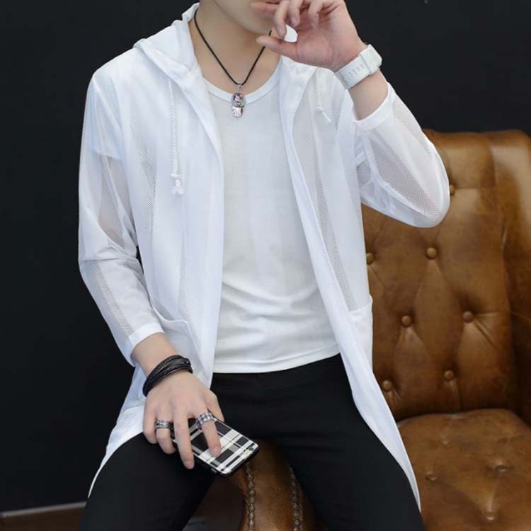 ロング丈 サマージャケット メンズ 冷 トップス パーカー 新登場! 無地白/ロング丈 無地黒/ロング丈 M L XL 2XL 3XL