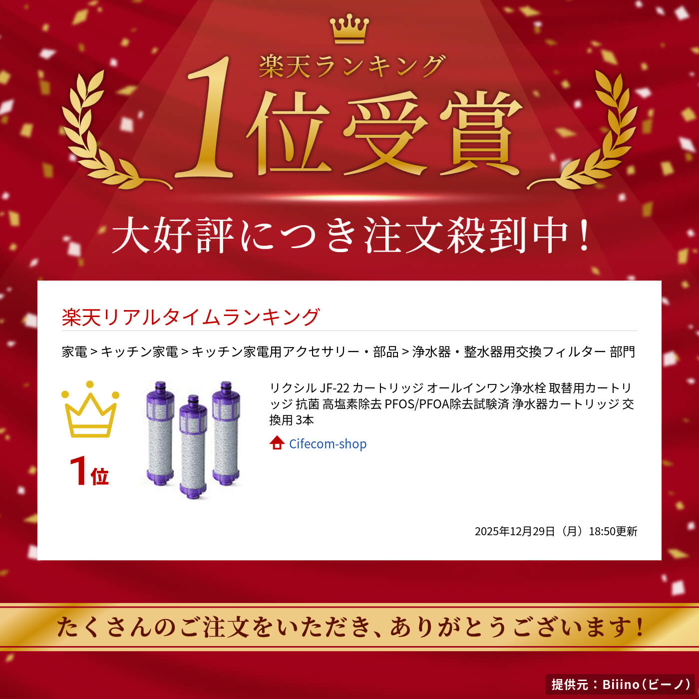 リクシル JF-22 カートリッジ オールインワン浄水栓 取替用カートリッジ 抗菌 高塩素除去 PFOS 浄水器カートリッジ 交換用 3本 PFOA除去試験済