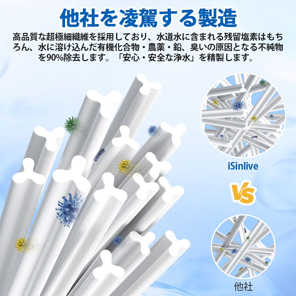 【日本正規品】isinlive Japan株式会社が販売するisinliveの正規品であるとともに、厳密な品質管理、保管および輸送基準に基づき輸入・販売されるものであることを保証いたします。 国内仕様のフィルターとほとんど変わらず美味しいお水をいただけます。よりきれいでより新鮮なおいしい水が得られます。水アカの付着を防止し、家電製品を保護します。