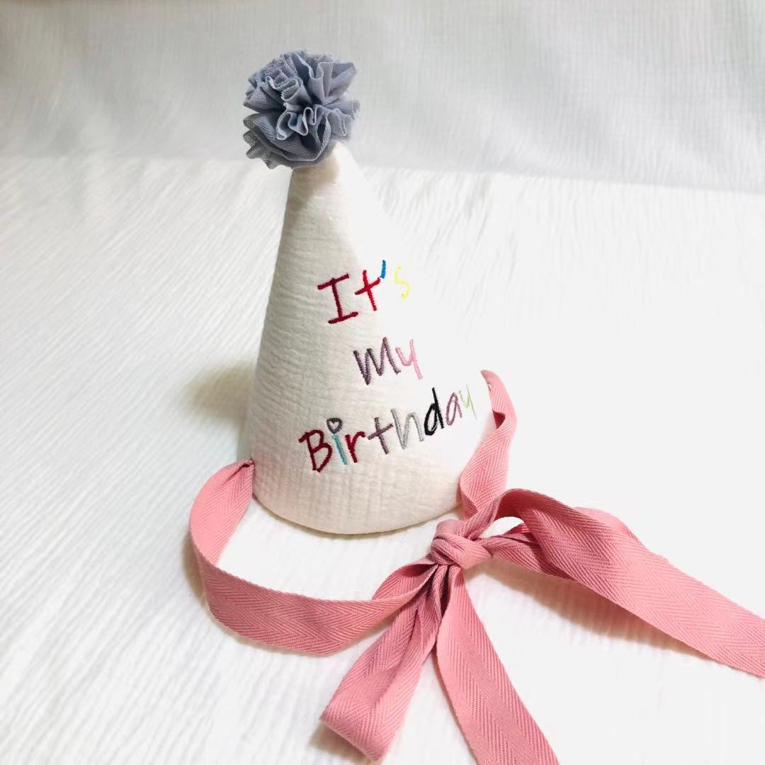 お誕生日祝い パーティーハット 三角帽 日用品雑貨 文房具 手芸 新作 ピンク毛玉ピンクリボン ピンク毛玉ブルーリボン グレー毛玉ピンクリボン グレー毛玉ブルーリボン