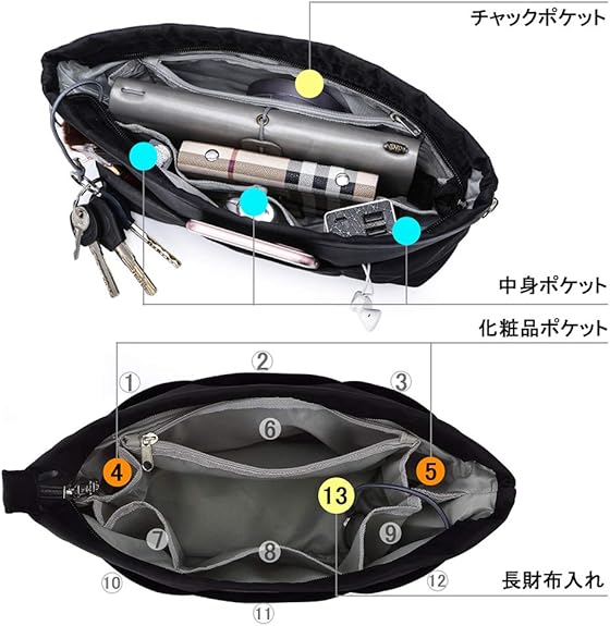 バッグインバッグ 自立 インナーバッグ バッグ 小物 ブランド雑貨 人気 XS S M L XL ブラック グレー ベージュ