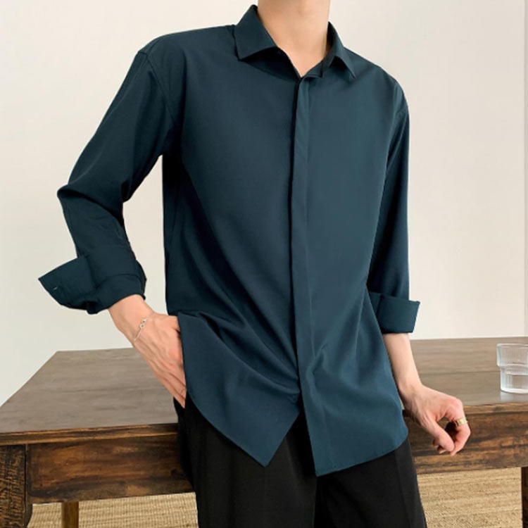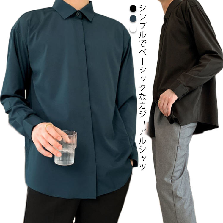 メンズ シャツ とろみ カジュアルシャ トップス カジュアルシャツ 早い者勝ち ダークグリーン ブラック ホワイト M L XL 2XL