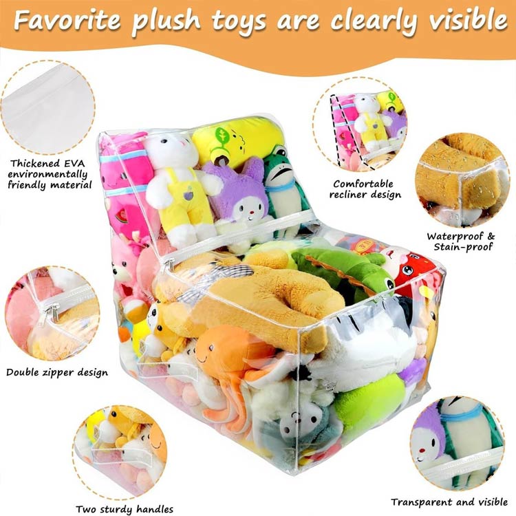 ぬいぐるみ 椅子 収納袋 透明 防塵 見せる 大容量 折りたたみ 見せる収納 防カビ 防湿 収納チェア おもちゃ 簡単片付け 人形収納 防水 軽量 キッズ 子供部屋 保育園 リビング 収納