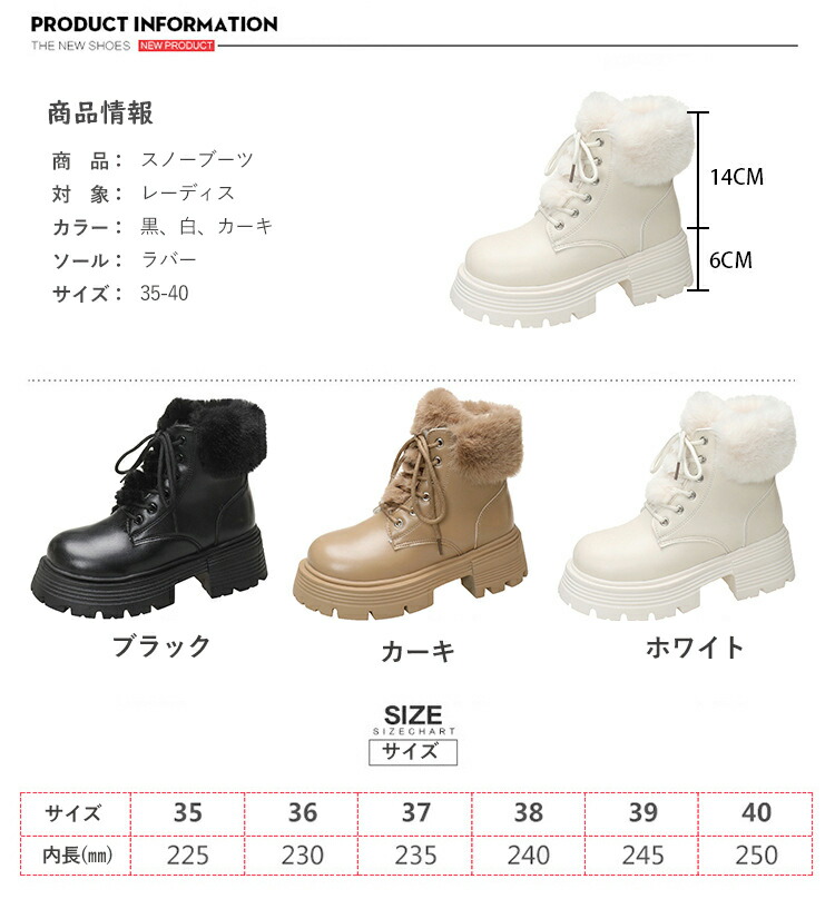 スノーブーツ レディース 北海道 滑ら 靴 新作 ブラック ホワイト カーキ 35(22.5cm) 36(23cm) 37(23.5cm) 38(24cm) 39(24.5cm) 40(25cm)
