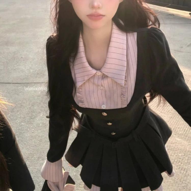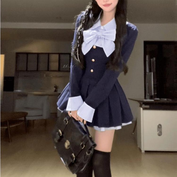 韓国系 ワンピース レディース ドレス レディースファッション 超目玉商品 ブラック+ピンク ネイビー+ブルー S M L XL