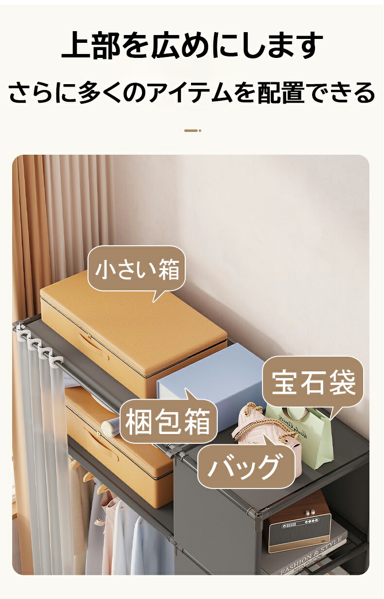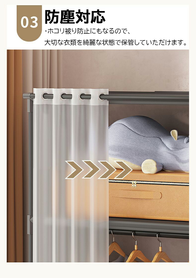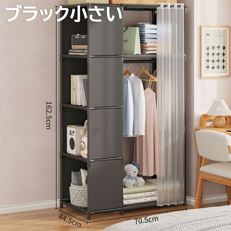 衣類収納ラック ワードローブ カバー付 ブラック小さい ブラック大きい アイボリー小さい アイボリー大きい
