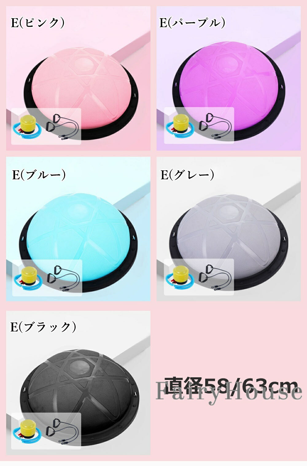 バランスボール 半円型 半円 バランス A(グレー) A(ブルー) A(ローズ) A(パープル) B(ブラック) B(パープル) B(ブルー) B(ローズ) C(パープル) C(ブルー) C(グレー) D(パープル) D(ローズ) D(ブルー) D(グレー) E(ピンク) E(パープル) E(ブルー) E(グレー) E(ブラック) 46cm 58cm 63cm