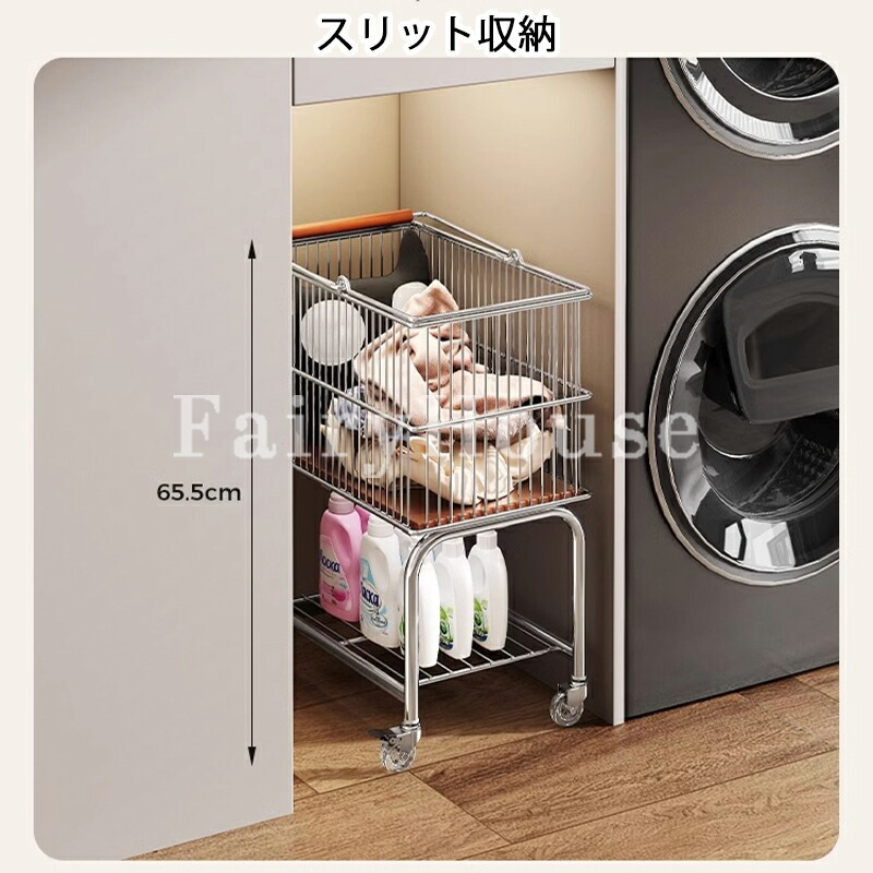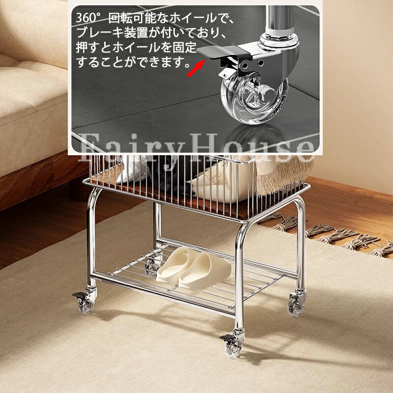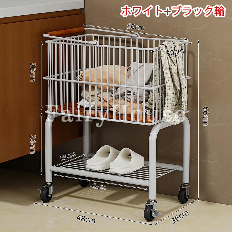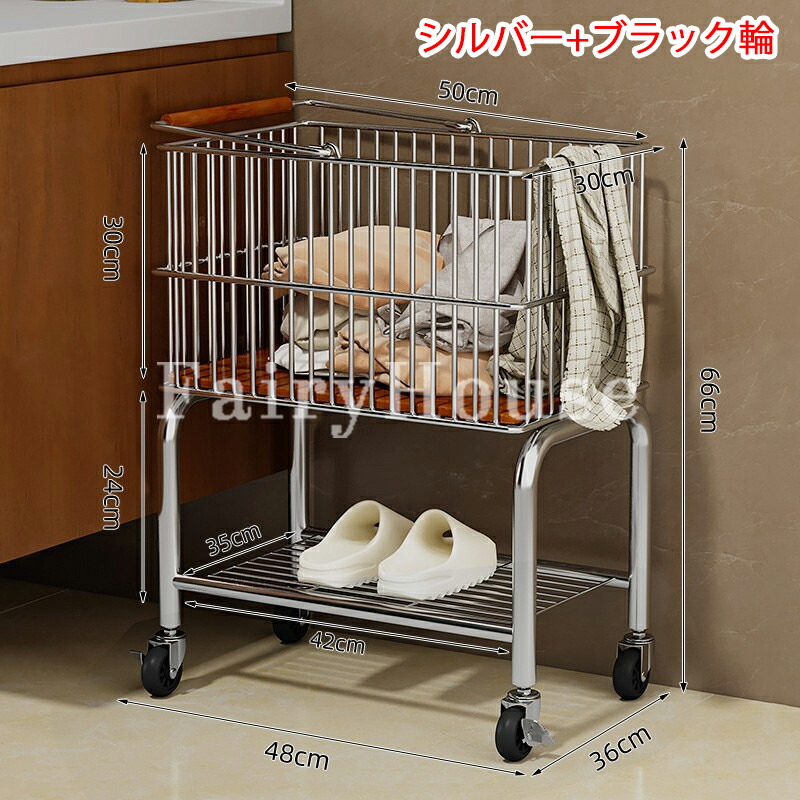 新作ランドリーバスケット 2段 ラック シルバー+ブラック輪 ホワイト+ブラック輪 シルバー+透明輪 ホワイト+透明輪