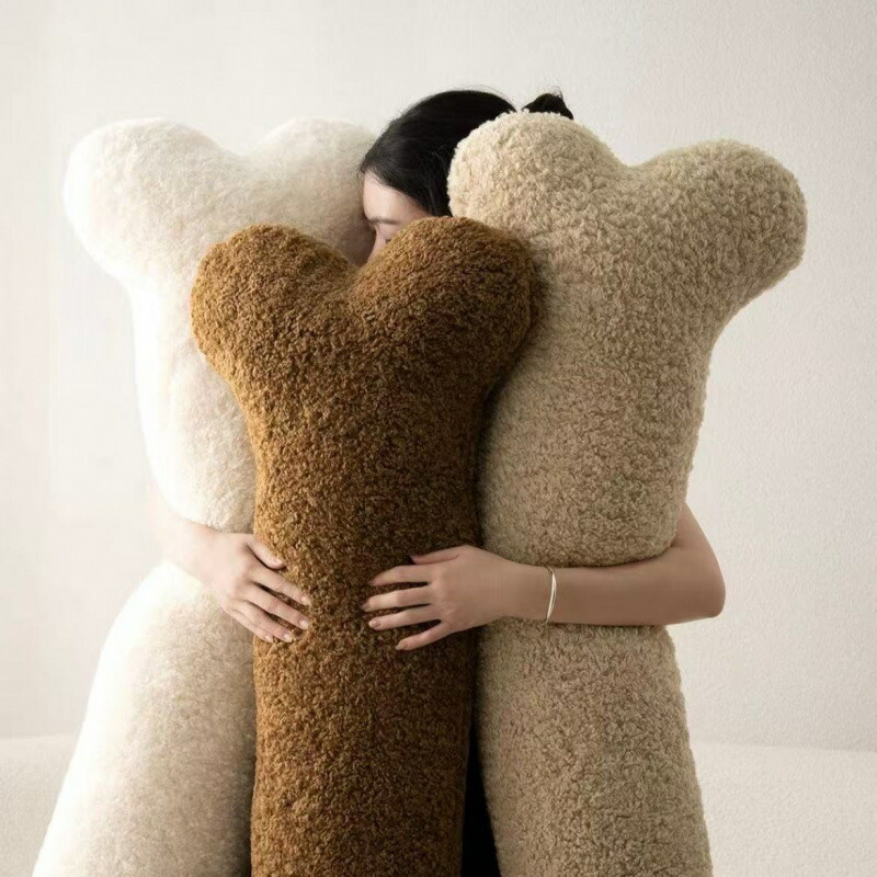 大きい骨形ボーン形長い抱き枕ロングクッ インテリア 寝具 収納 人気 ホワイト ライトブラウン ダークブラウン 60cm 100cm