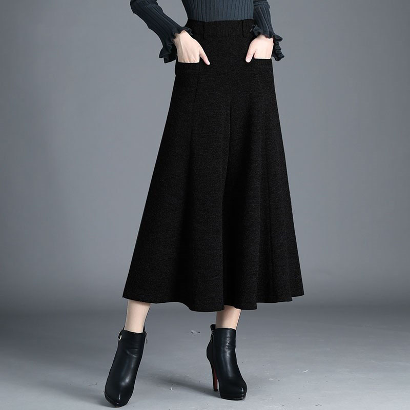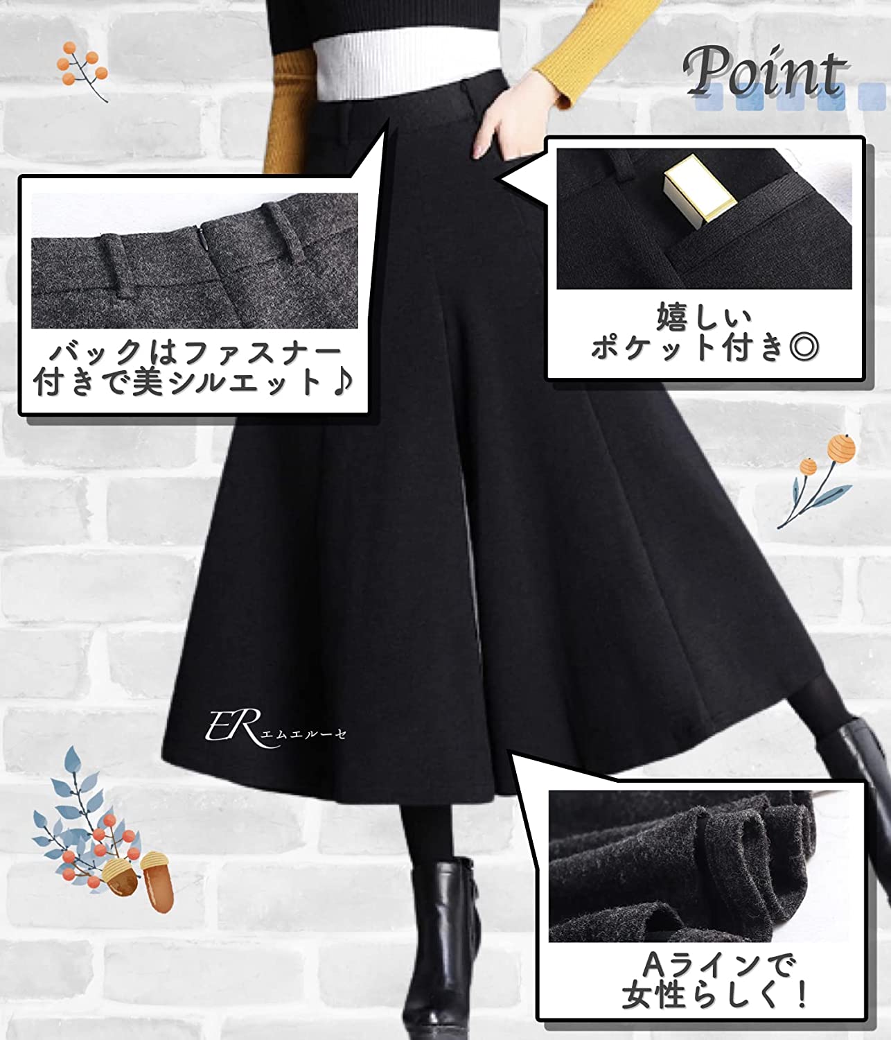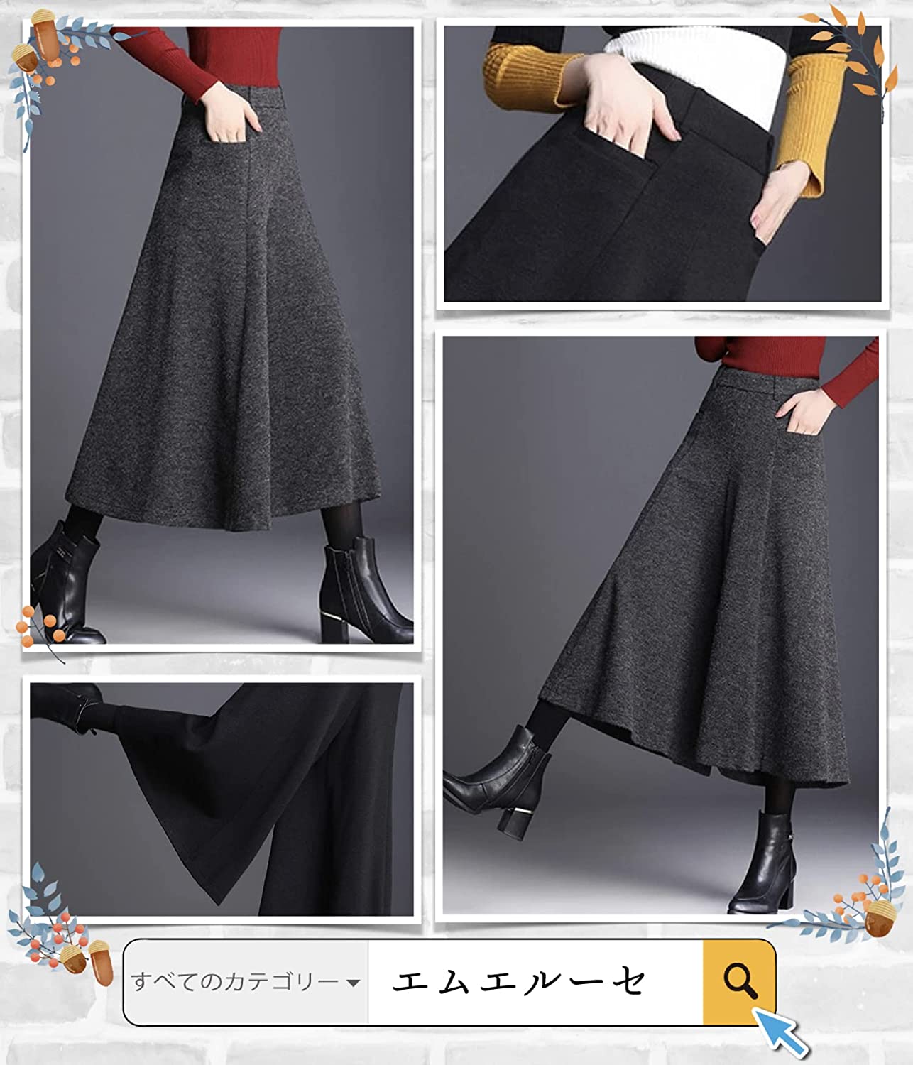 ミモレ丈 Aライン ワイドパンツ ガウ グレー ブラック S M L XL 2XL 3XL 4XL