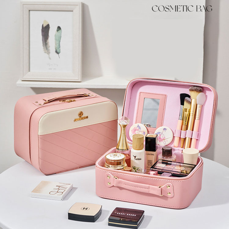 持ち運び 大容量 コスメポーチ 鏡付き ピンク(L) グリーン(L) レッド(L) ブラック(L) ベージュ(L) ピンク(M) グリーン(M) レッド(M) ブラック(M) ベージュ(M)