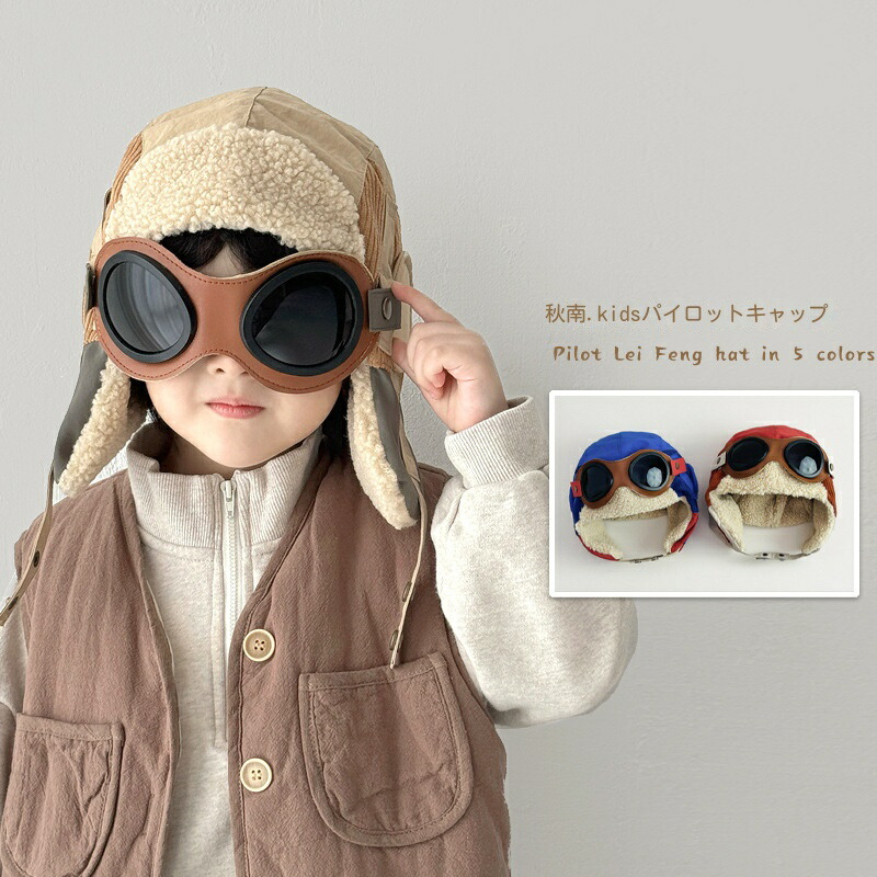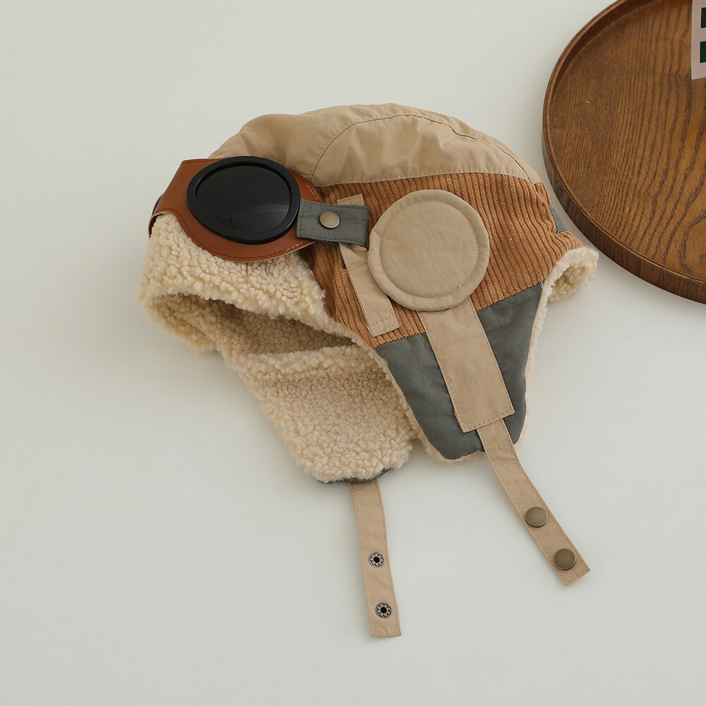 パイロット帽 耳あて ベビー帽子 ニット秋冬 厚手 子供 キッズ用 防寒 防風 キッズ かわいい パイロットキャップ もふもふ 飛行帽 フライトキャップ 登山帽 裏起毛 おしゃれ 男女兼用 防寒帽子