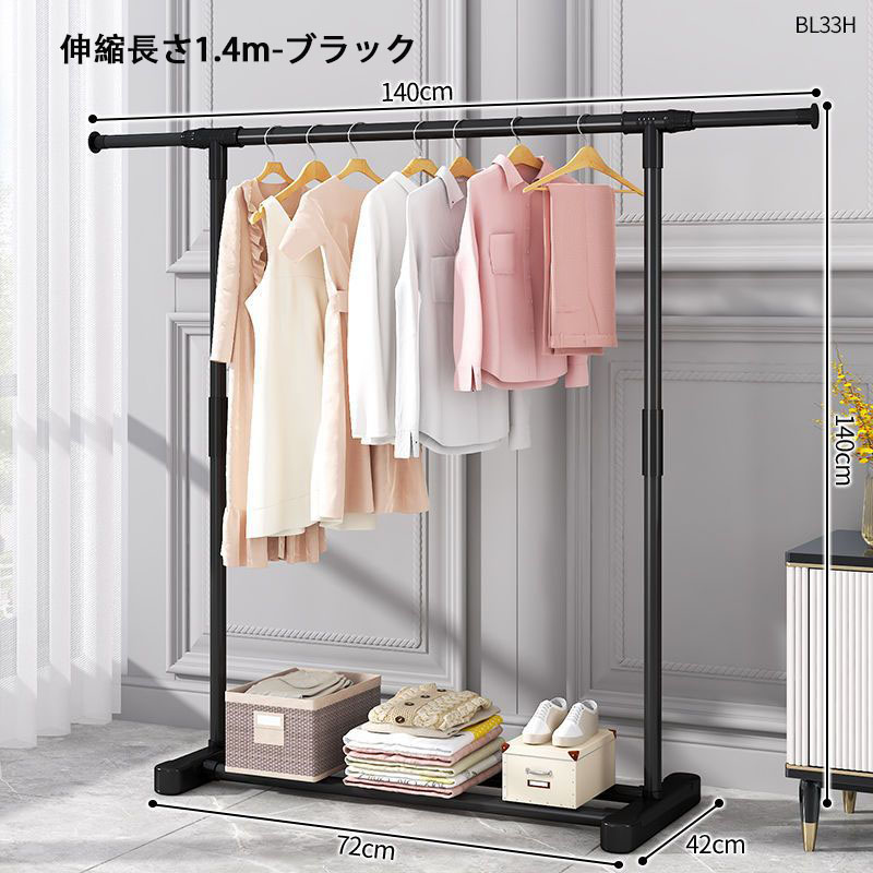ハンガーラック洋服ラック コート 子ど 長63cm-ブラック 長70cm-ブラック 伸縮長さ1-1.2m-ブラック 伸縮長さ1.4m-ブラック 長さ1.4mブラック+ダブルロッド 長さ1.4mホワイト+ダブルロッド 伸縮長さ1.4m キャスター付き