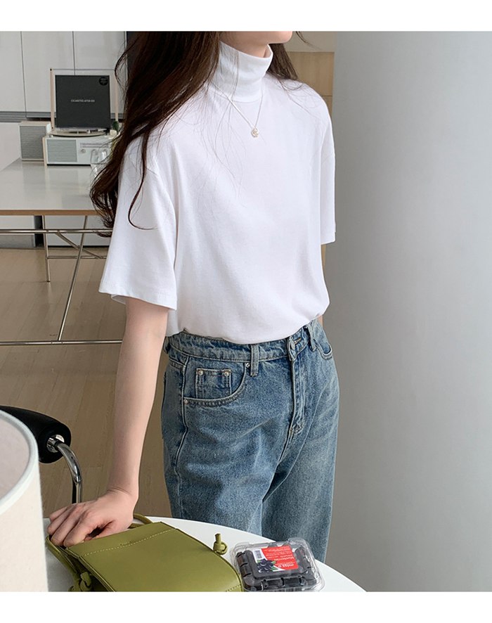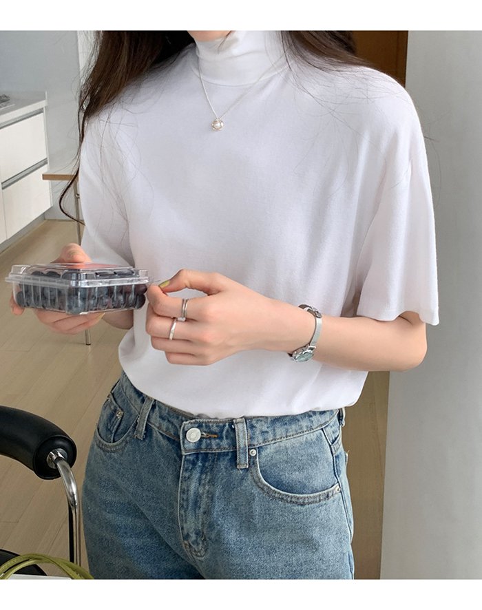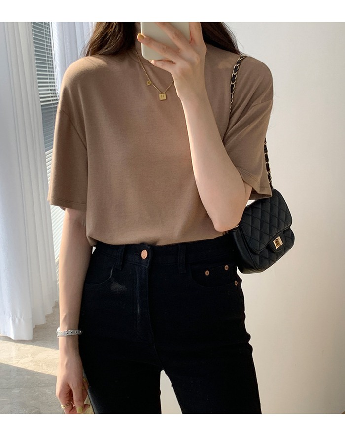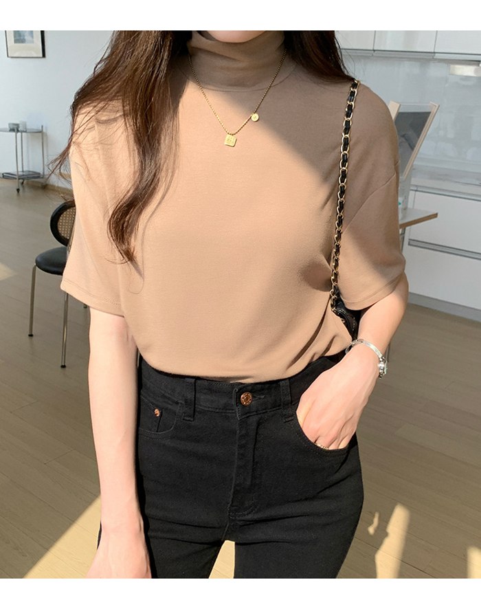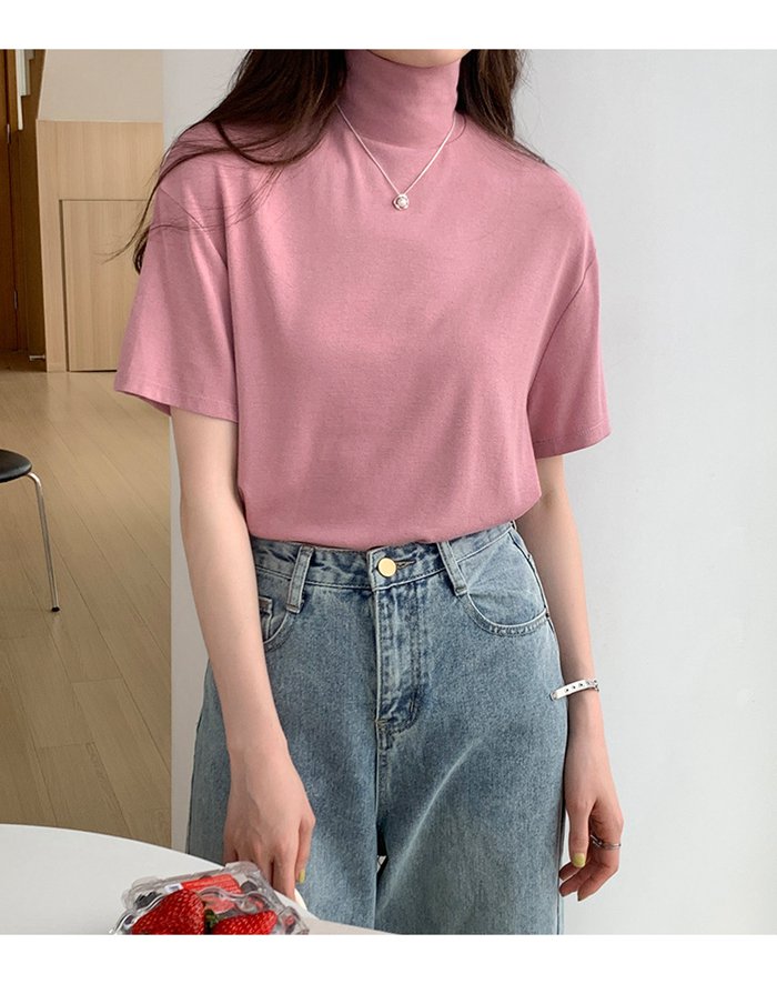 Tシャツ レディース ハイネックカット レディースファッション 通販 ホワイト ブラック コーヒー色 グレー ピンク M L XL