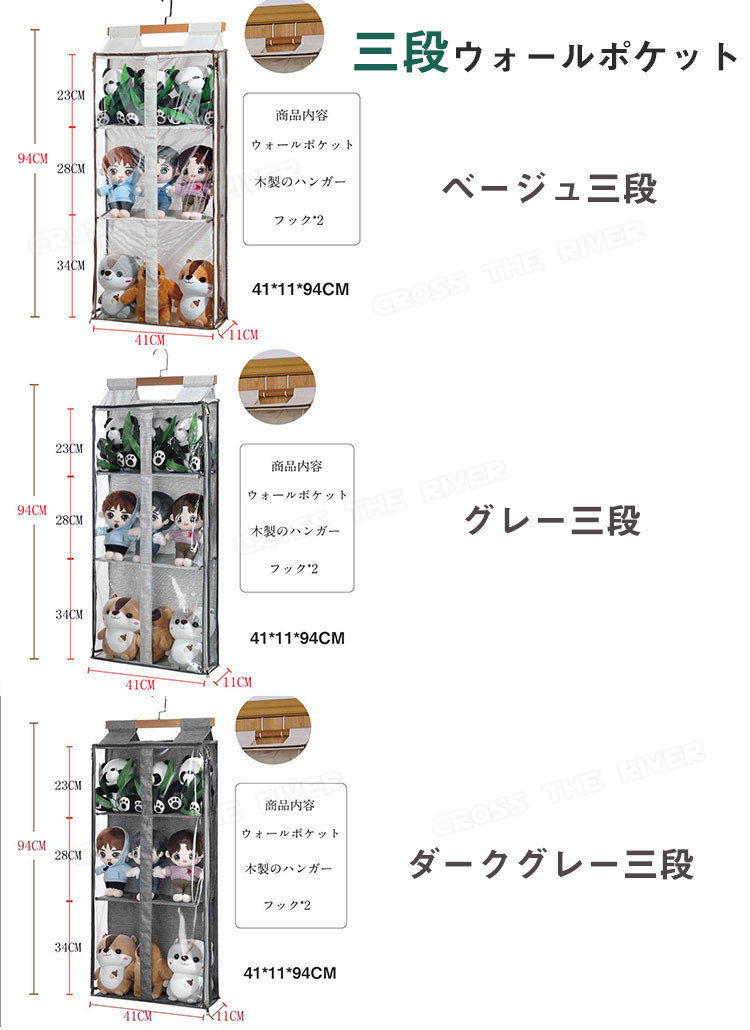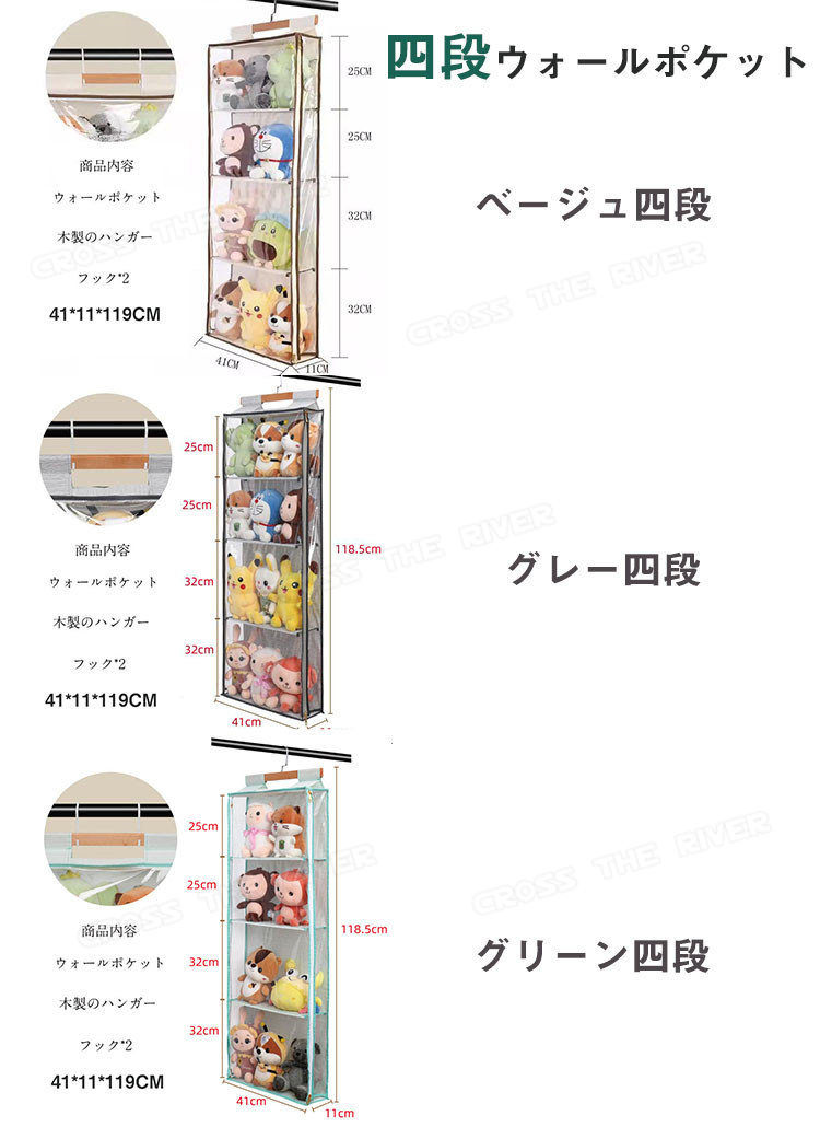 ぬいぐるみ 収納 ウォールポケット 3 ベージュ三段 グレー三段 ダークグレー 三段 ベージュ四段 グレー四段 グリーン四段 ベージュ五段 グリーン五段 ベージュ六段 グリーン六段