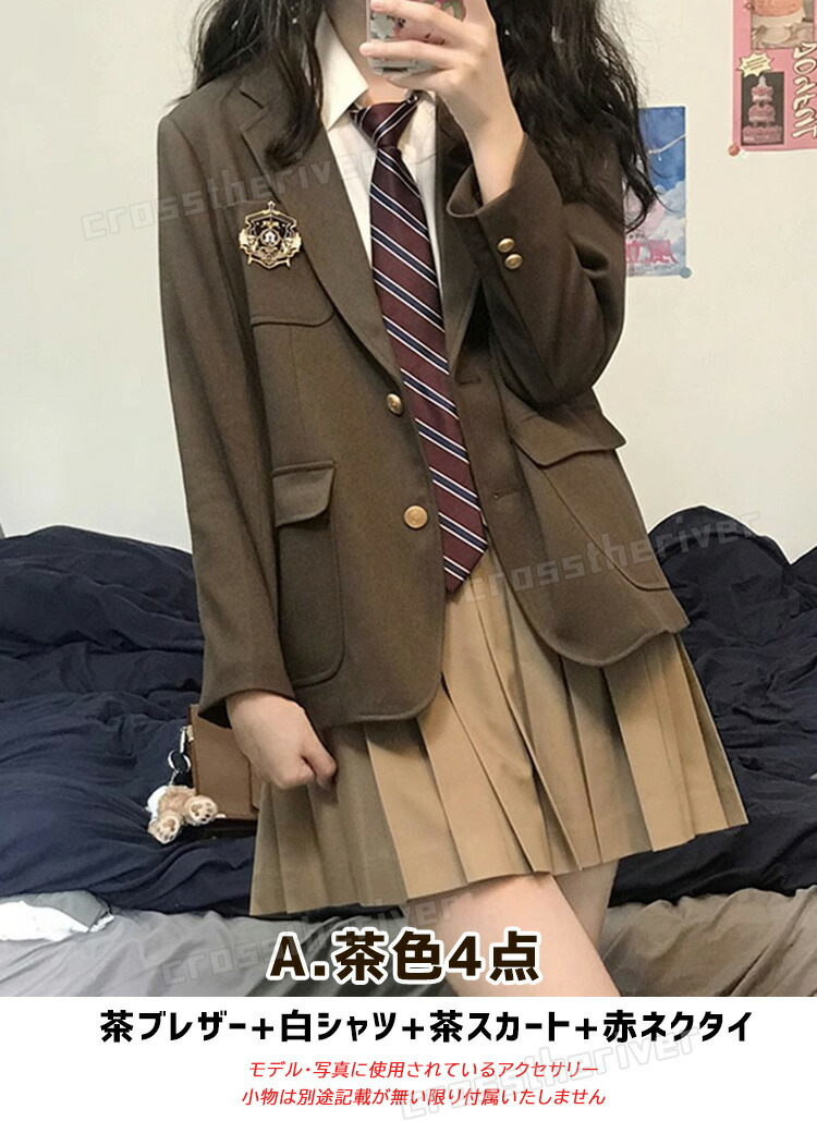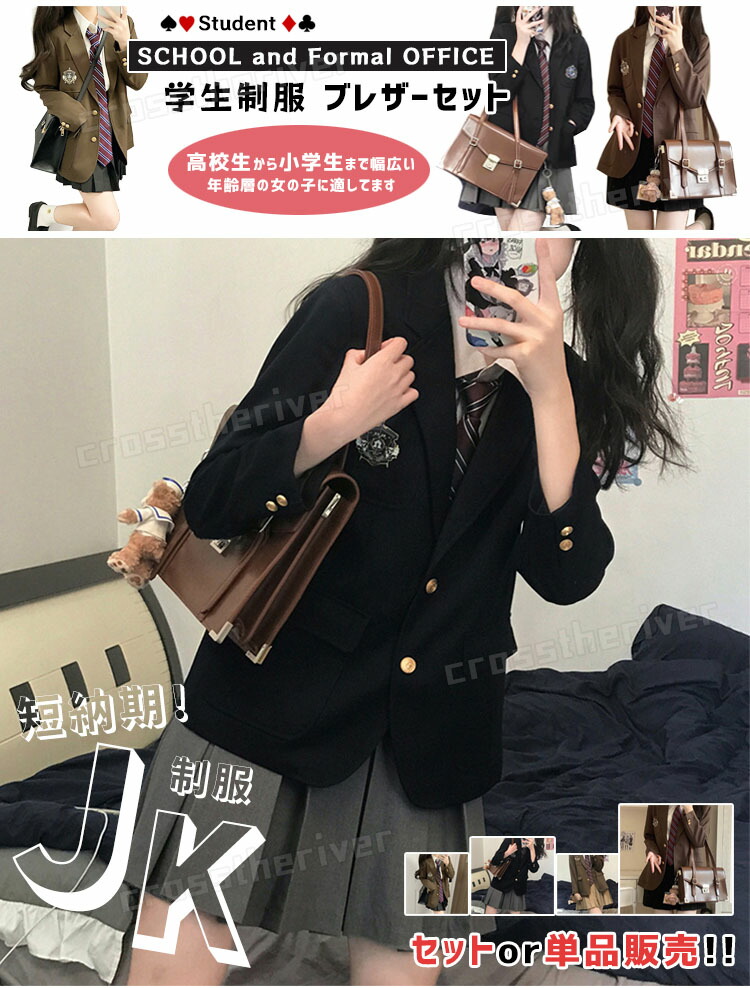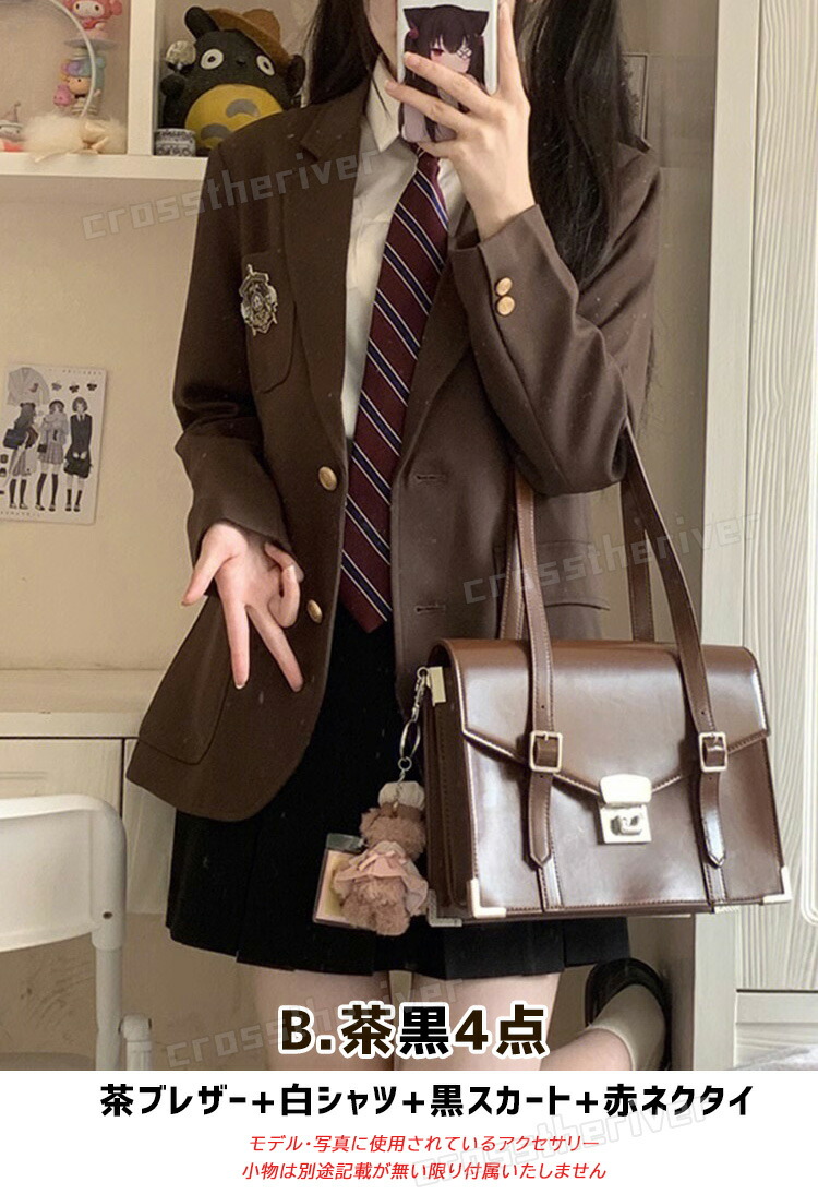 卒業式 スーツ 女の子 なんちゃって制 キッズ スーツ カジュアルセットアップ スーツ 豊富 黒ブレザー 茶ブレザー A.茶色4点 B.茶黒4点 C.黒灰4点 D.黒紺4点 XS S M L XL 2XL