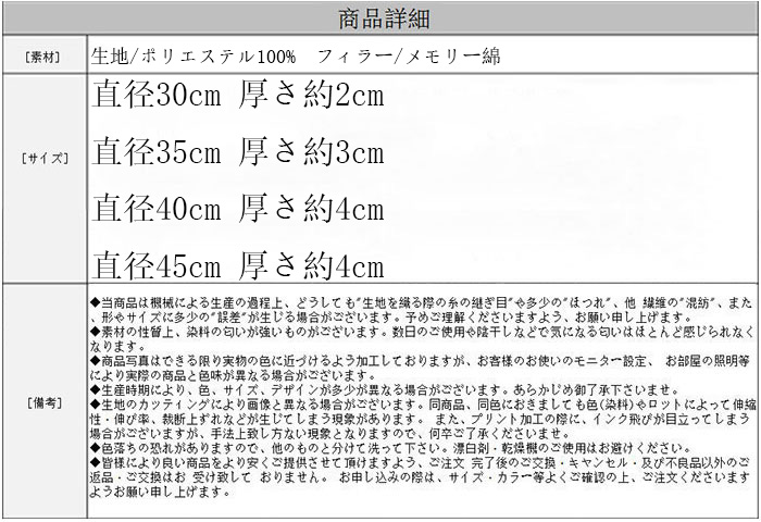 椅子 クッション 椅子用 丸型 和座布 type1 type2 type3 type4 type5 直径30cm 厚さ約2cm 直径35cm 厚さ約3cm 直径40cm 厚さ約4cm 直径45cm 厚さ約4cm
