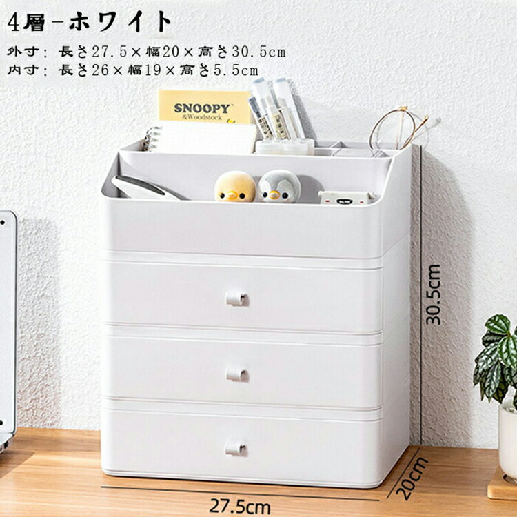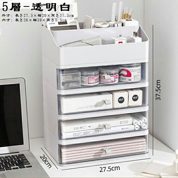 引き出しデスクファイル収納ラック 引き 透明白 2層 透明白 3層 透明白 4層 透明白 5層 ホワイト 2層 ホワイト 3層 ホワイト 4層 ホワイト 5層