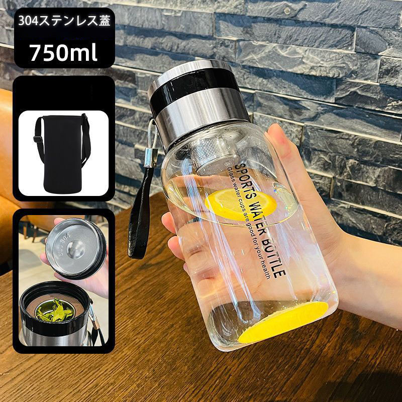ウォーターボトル ガラス ボトル 水筒 弁当箱 水筒 水筒 マグボトル 人気 ステンレス蓋+防熱カップカバー プラスチック蓋+防熱カップカバー 1000ml 750ml