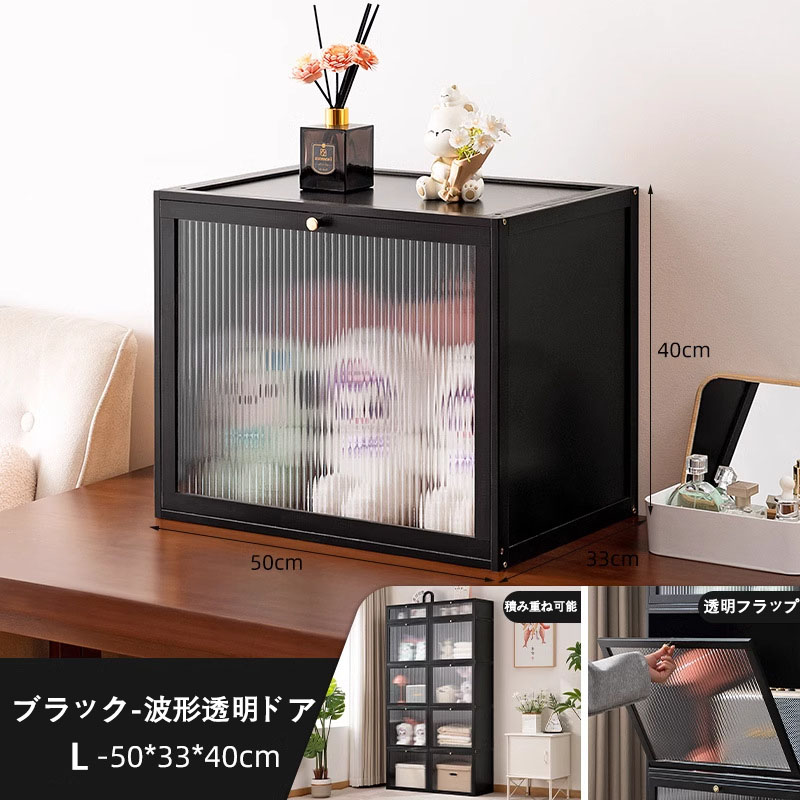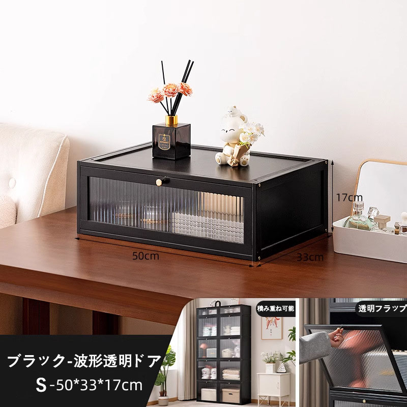 アイデア∞の自由な収納 キューブボック HD透明ドア 波形透明ドア 茶色 原色 ブラック