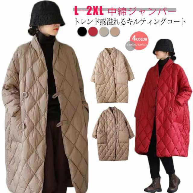 ノーカラー キルティングコート レディ コート ジャケット 豊富な品揃え ブラック レッド ベージュ アイボリー L XL 2XL