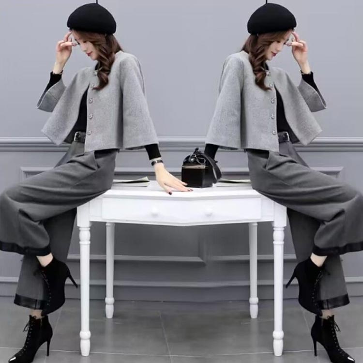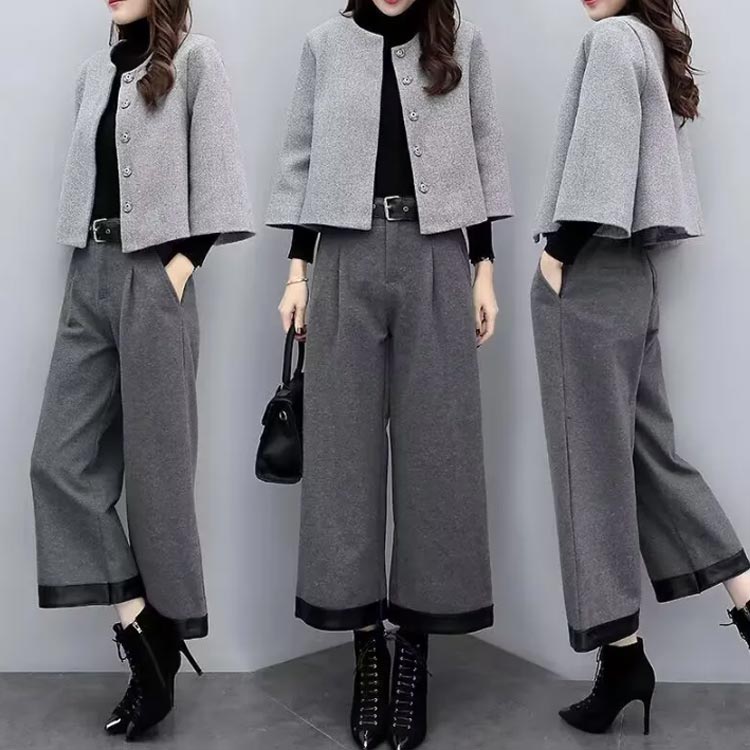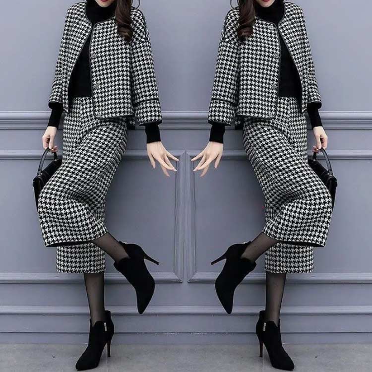 千鳥格子 卒業式 ウールタッチ セレモ スーツ セットアップ パンツスーツ 人気 千鳥格子上下 グレー上下(ベルト付き) S M L XL 2XL 3XL