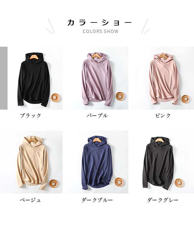 パーカー レディース 長袖Tシャツ 裏 レディースファッション 早い者勝ち L XL 2XL ブラック パープル ピンク ベージュ ダークブルー ダークグレー