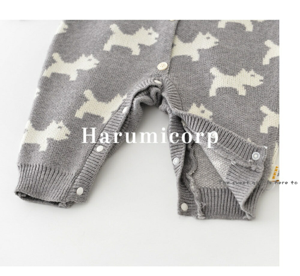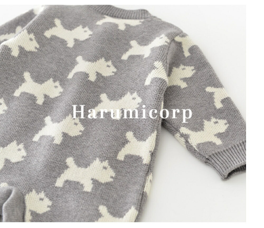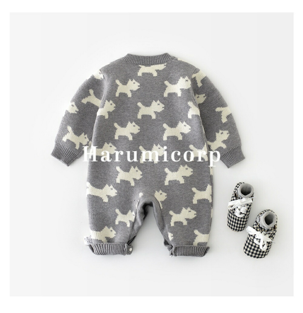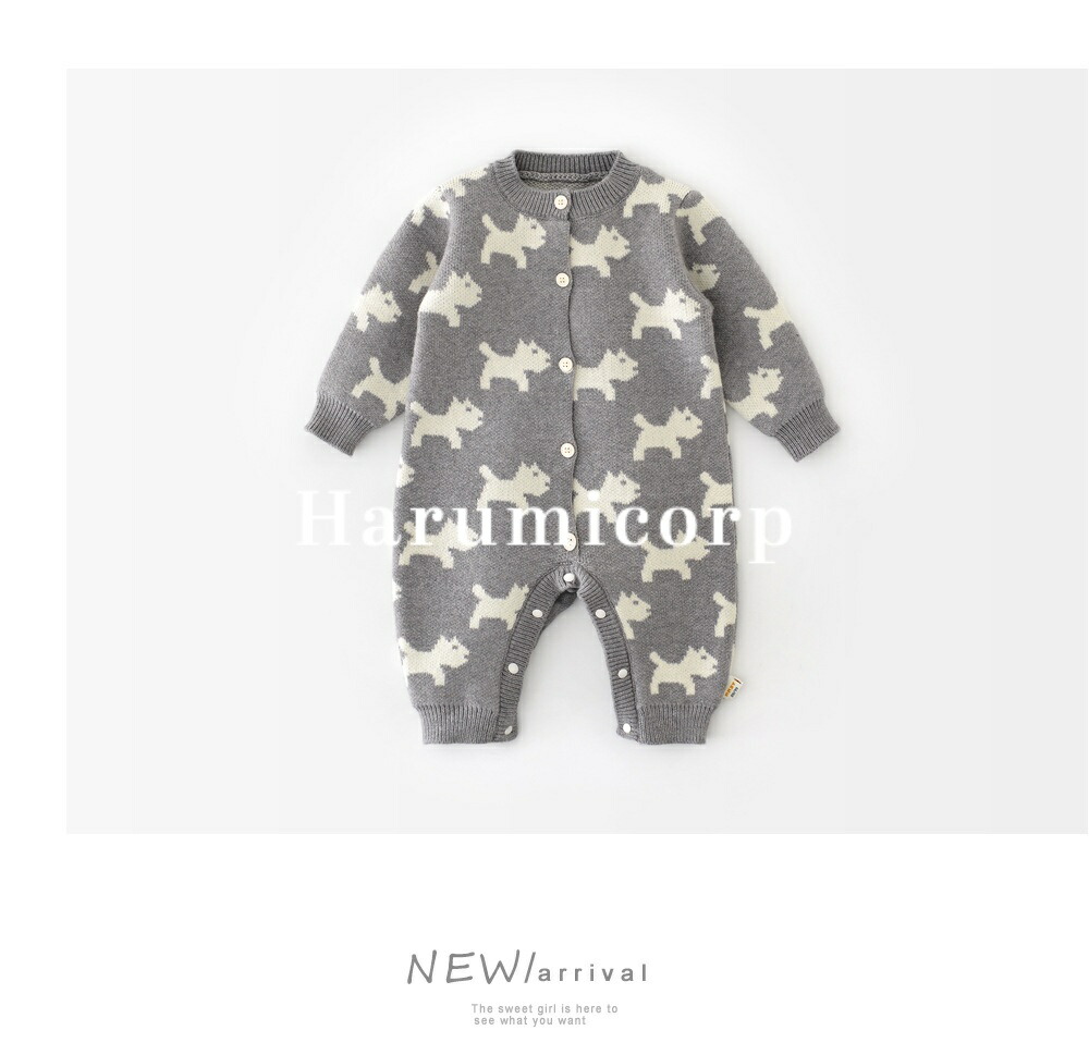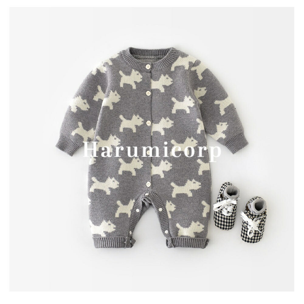 ニット ロンパース 犬 総柄 新生児 キッズ ベビー マタニティ 人気 66cm 73cm 80cm 90cm