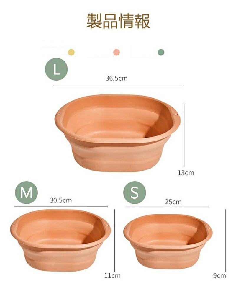 折りたたみ たためる 洗面器 洗い桶 バス用品 洗面器 風呂桶 早い者勝ち ピンク イエロー グリーン S M L