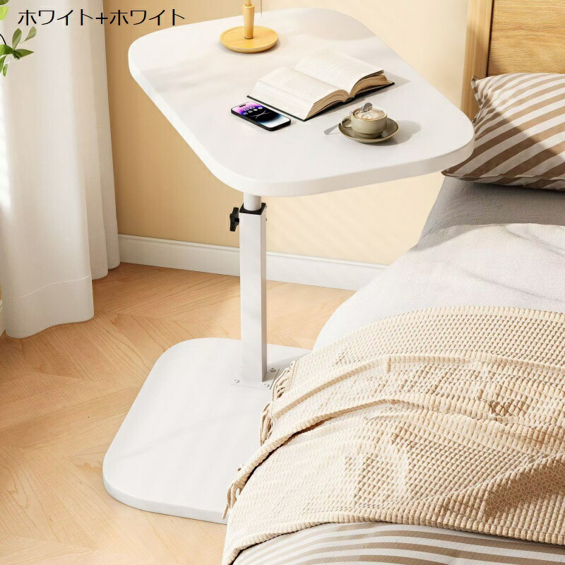 サイドテーブル 昇降式 ベッドサイドテ ブラック+クルミ ブラック+木目調 ブラック+ブラック ホワイト+木目調 ホワイト+ホワイト