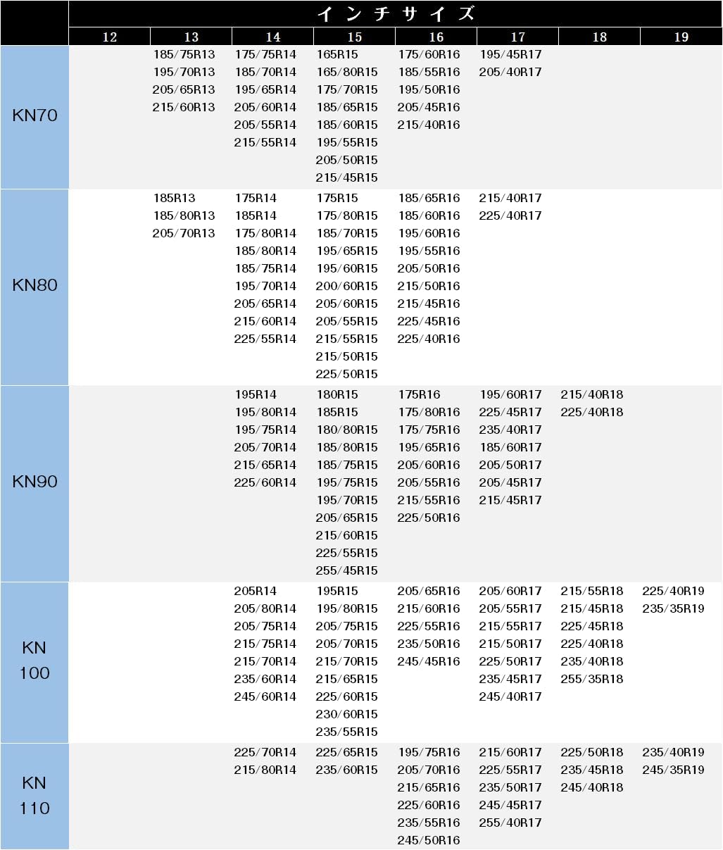 タイヤチェーン スノーチェーン ジャッ KN20 KN30 KN40 KN50 KN60 KN70 KN80 KN90 KN100 KN110