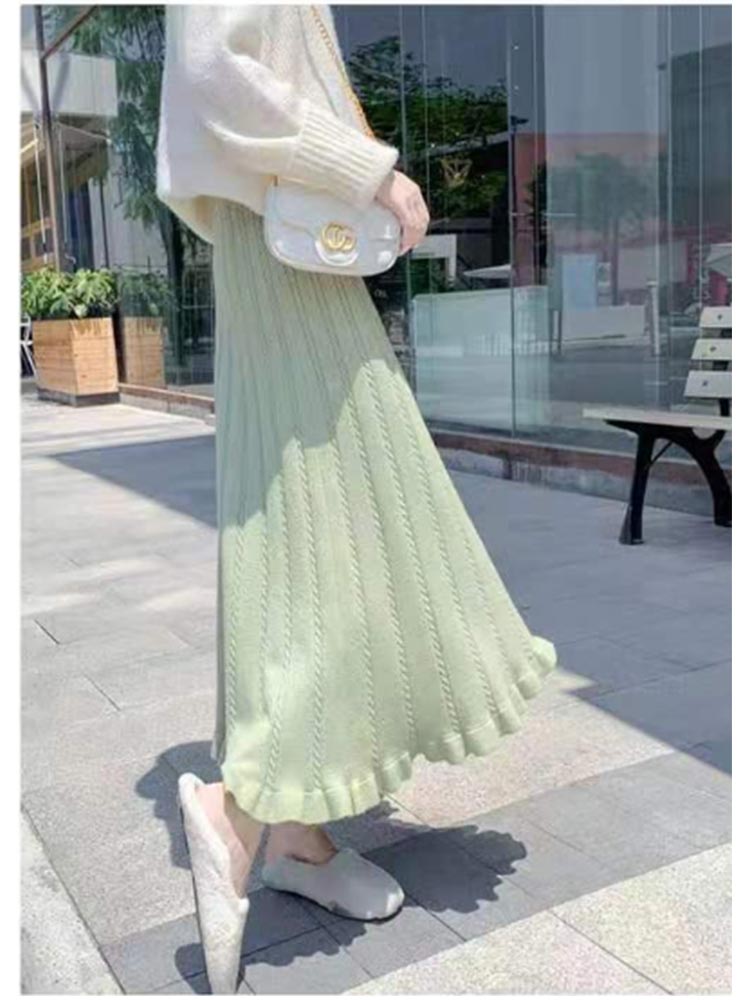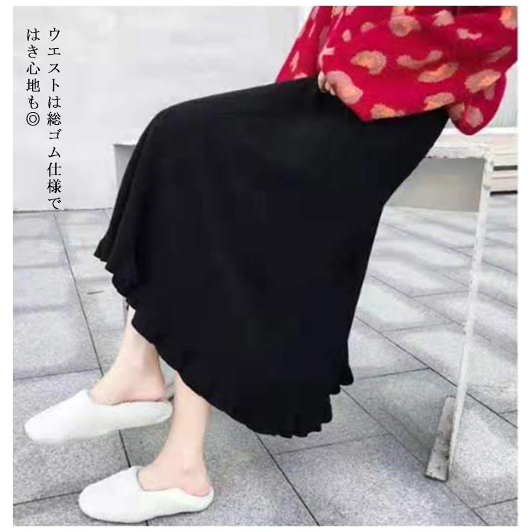 ニットスカート フレアスカート レディ ボトムス スカート 人気 グリーン ブラック オフホワイト グレー S M L XL