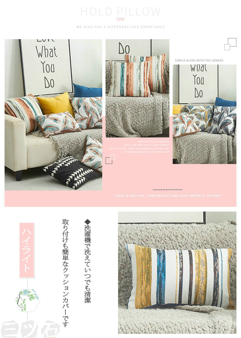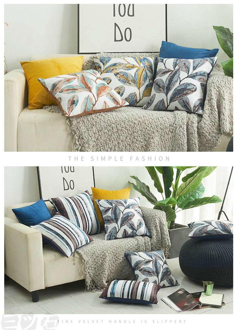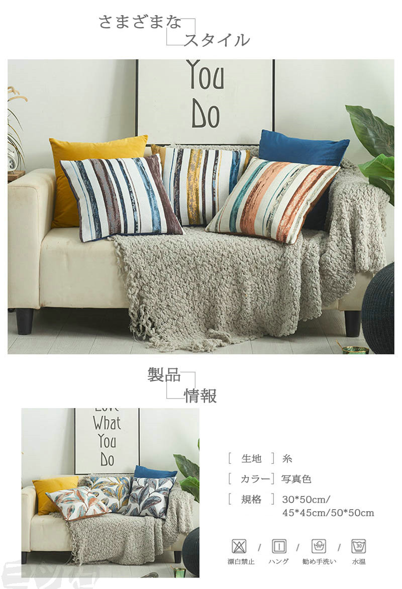 1位受賞クッションカバー 2枚組 45 45*45cm(2枚) 50*50cm(2枚) 30*50cm(2枚) コーヒーストライプ コーヒー葉 イエロー葉 イエローストライプ ブルーストライプ ブルー葉