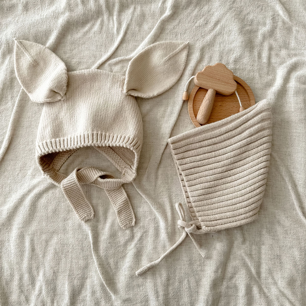 かわいい ベビー ニットボンネット 耳付きボンネット ベビー帽 新生児 ニューボーンフォト ニット 出産祝い 赤ちゃん ニッ 帽子