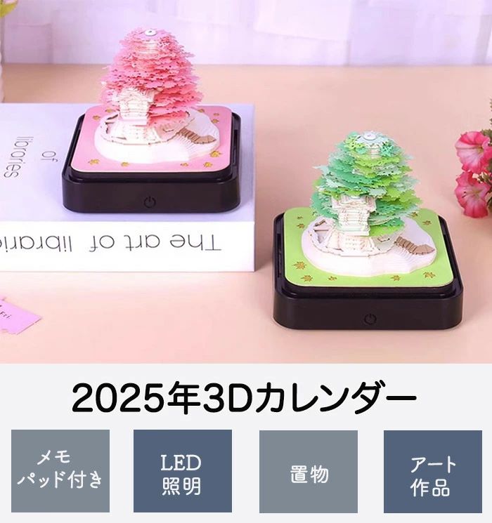 2026年カレンダー カレンダー 3D ピンク・ツリー グリーン・ツリー ブルー・地球 レッド・地球 レッド・キノコ ピンク・キノコ グリーン・キノコ ブルー・キノコ
