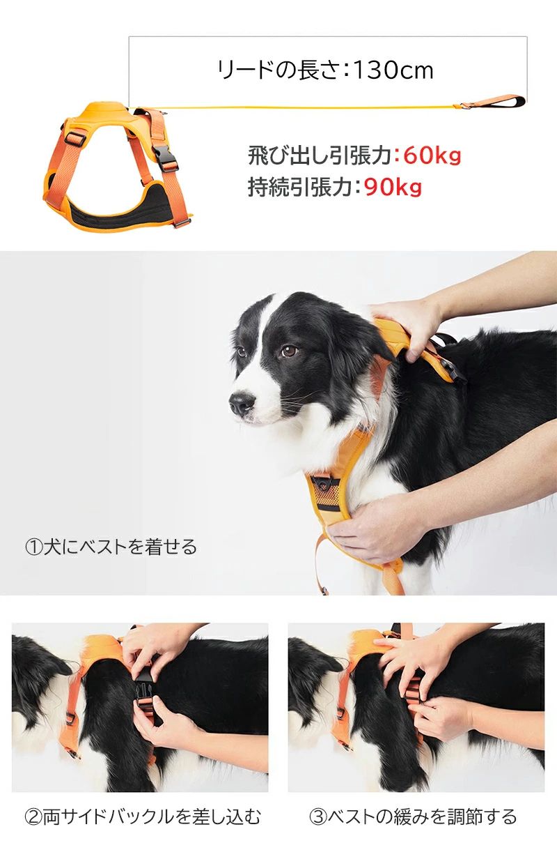 ペット リード ベスト 伸縮 130c ペット ペットグッズ 豊富な品揃え オレンジ ブラック M(7.5-15kg) L(15-25kg) XL(25-35kg)
