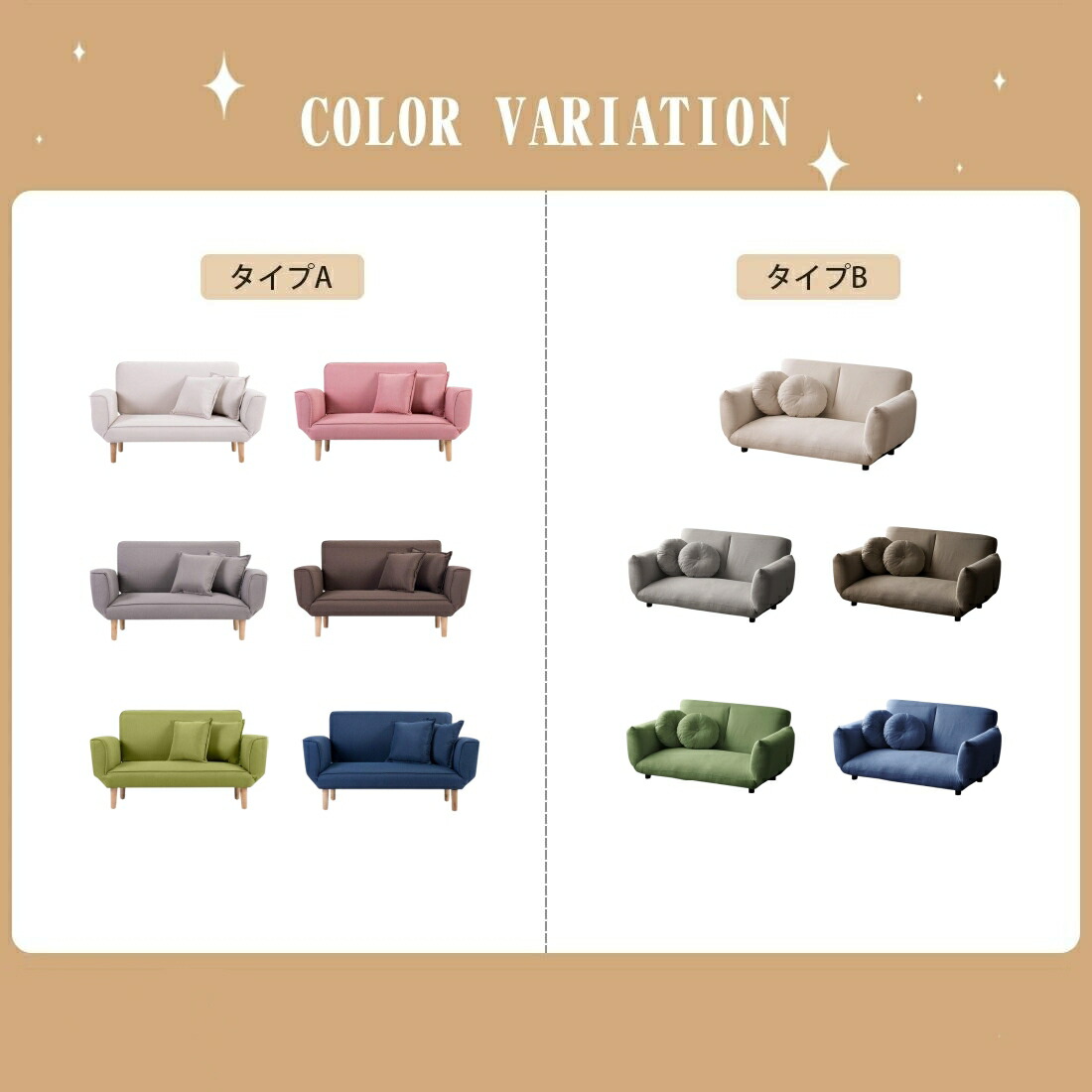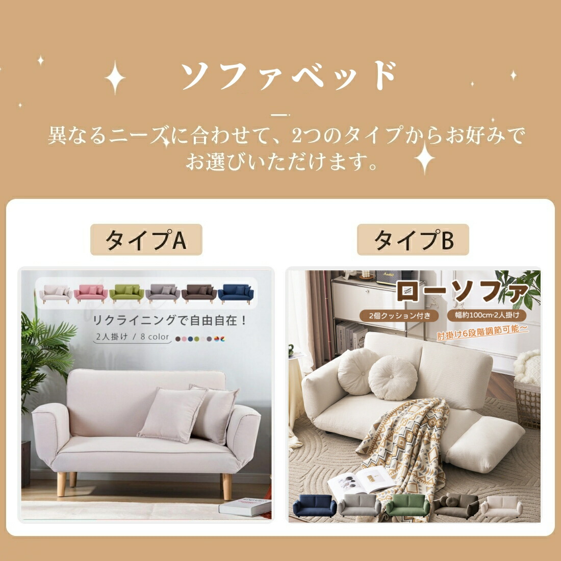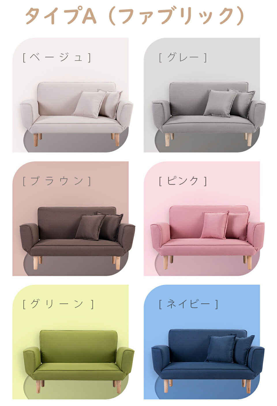 ソファーベッド ソファー 2人掛け 5 タイプA タイプB ベージュ グレー ブラウン ネイビーブルー グリーン ピンク