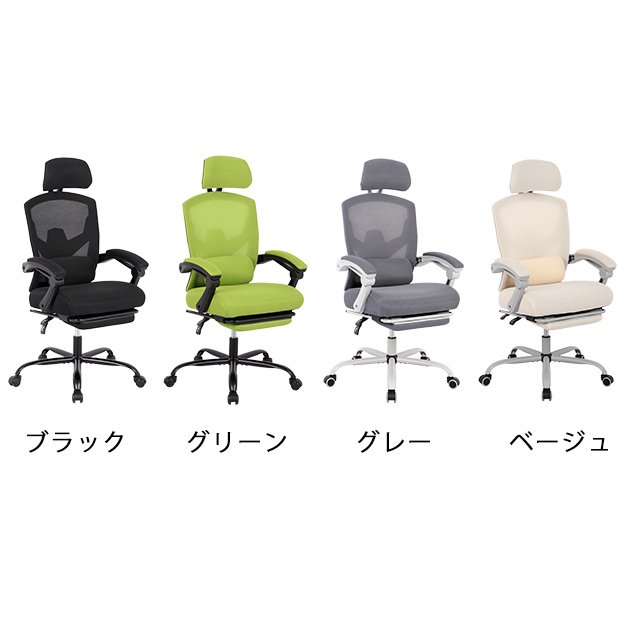 オフィスチェア リクライニング 人間工 ブラック グレー+グレー グレー+ブルー グレー+ベージュ ブラック+グリーン