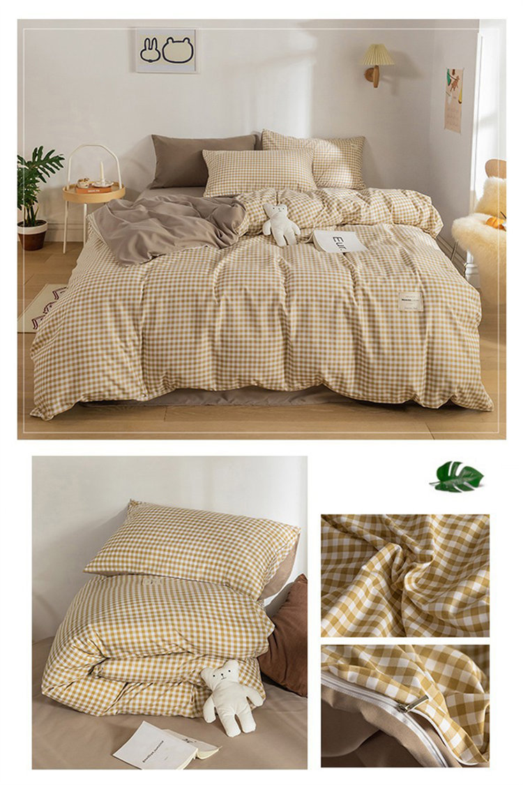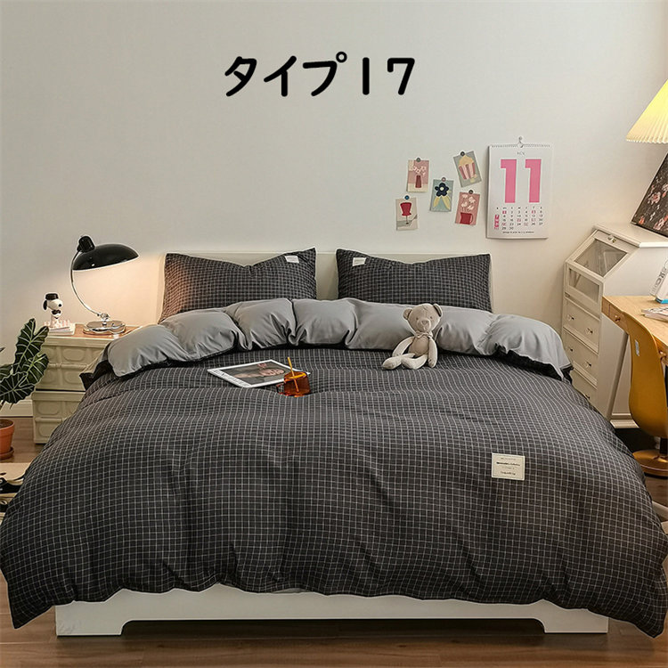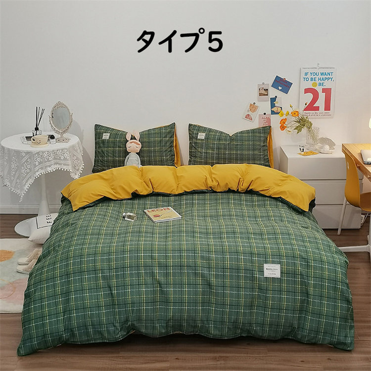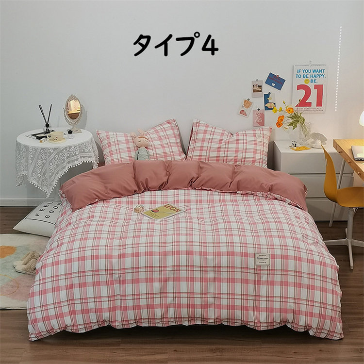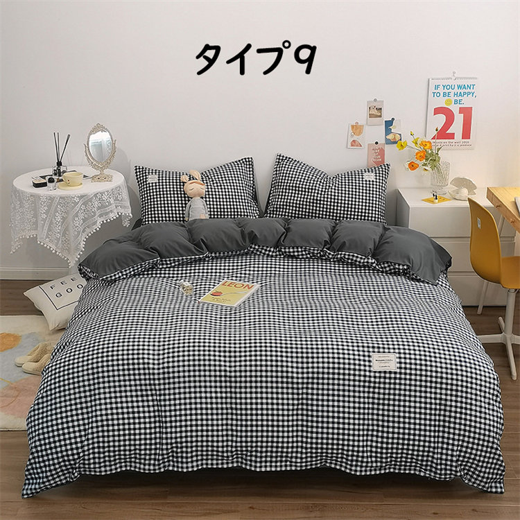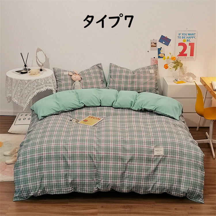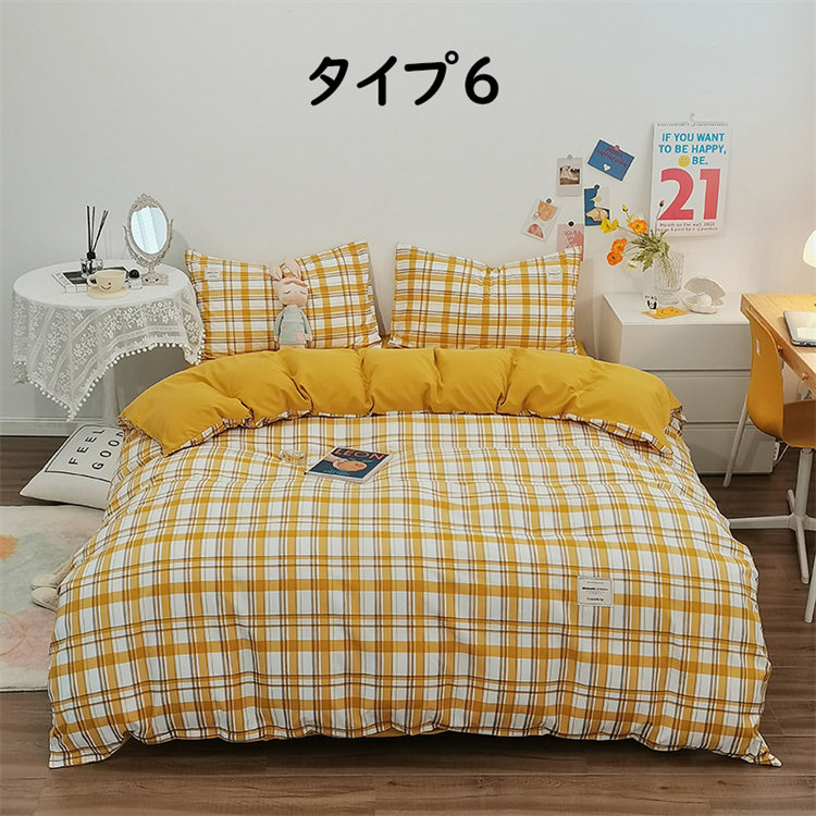 Iチェック布団セット 1.2mベッド 布団カバー150*200cm ベッド笠120*200cm 枕カバー1つ シングル 北欧 INS風 高級 通気性 肌に優しい 洋式 ベッド用 掛けカバー 吸汗速乾