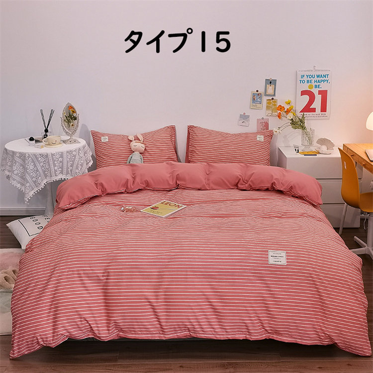 ※D【1.5mベッド(4点セット):布団カバー(180*220cm)シーツ(235*250cm)+枕カバー(48*74cm)2つ】