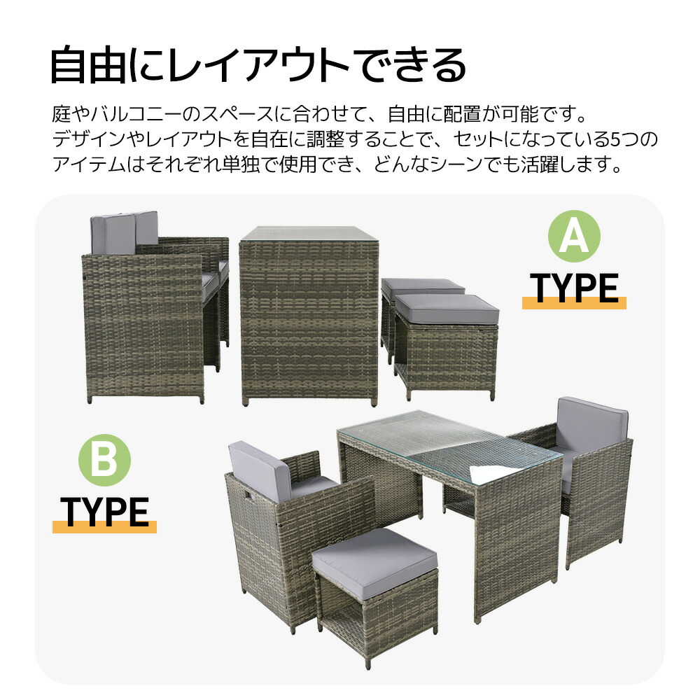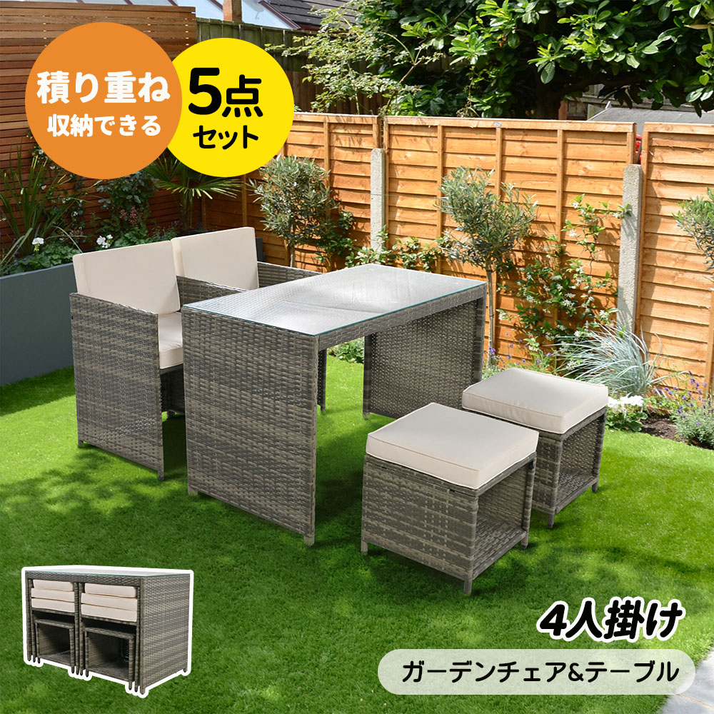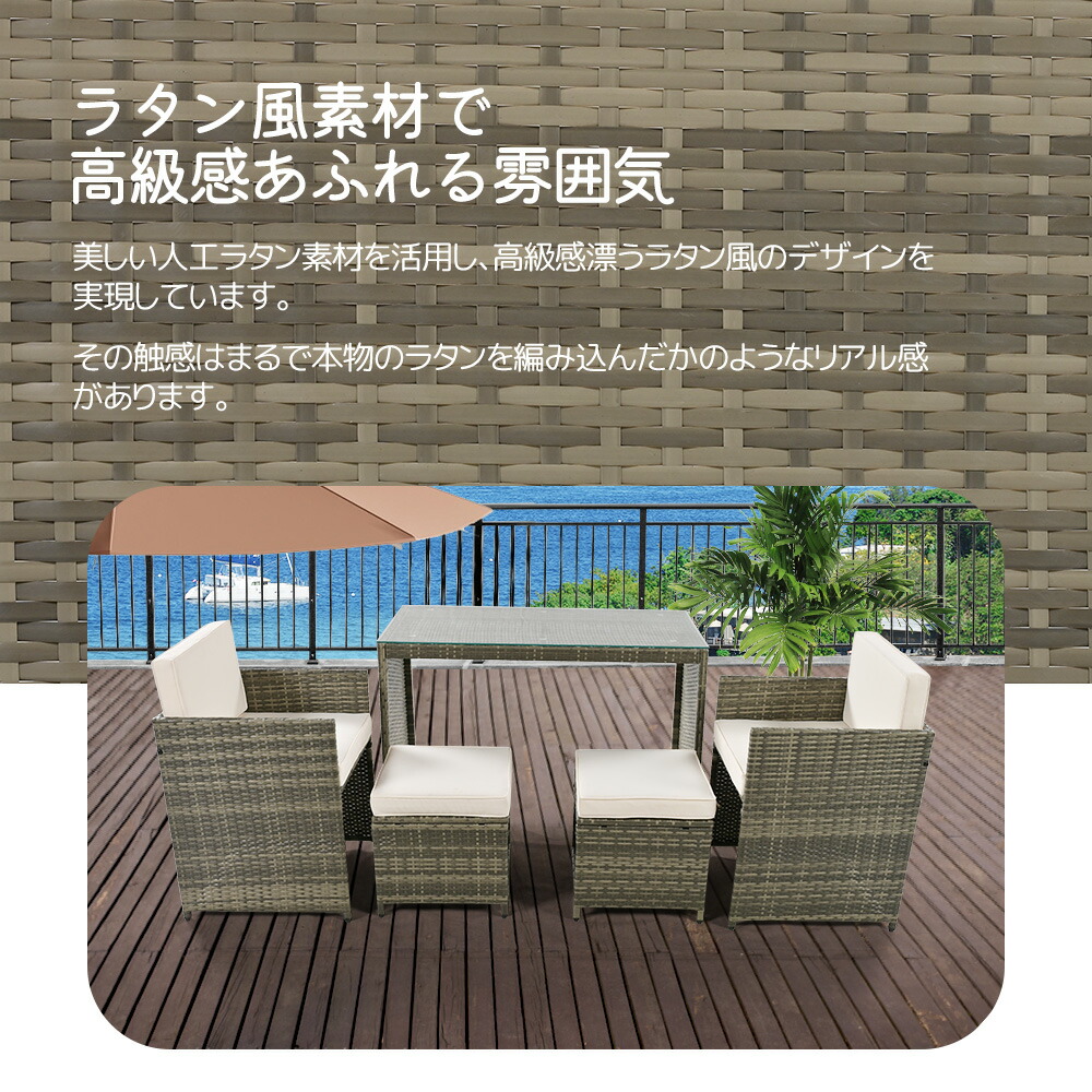 ラタン調 ガーデンファニチャー ガーデ ホワイト グレー