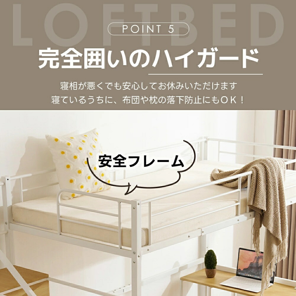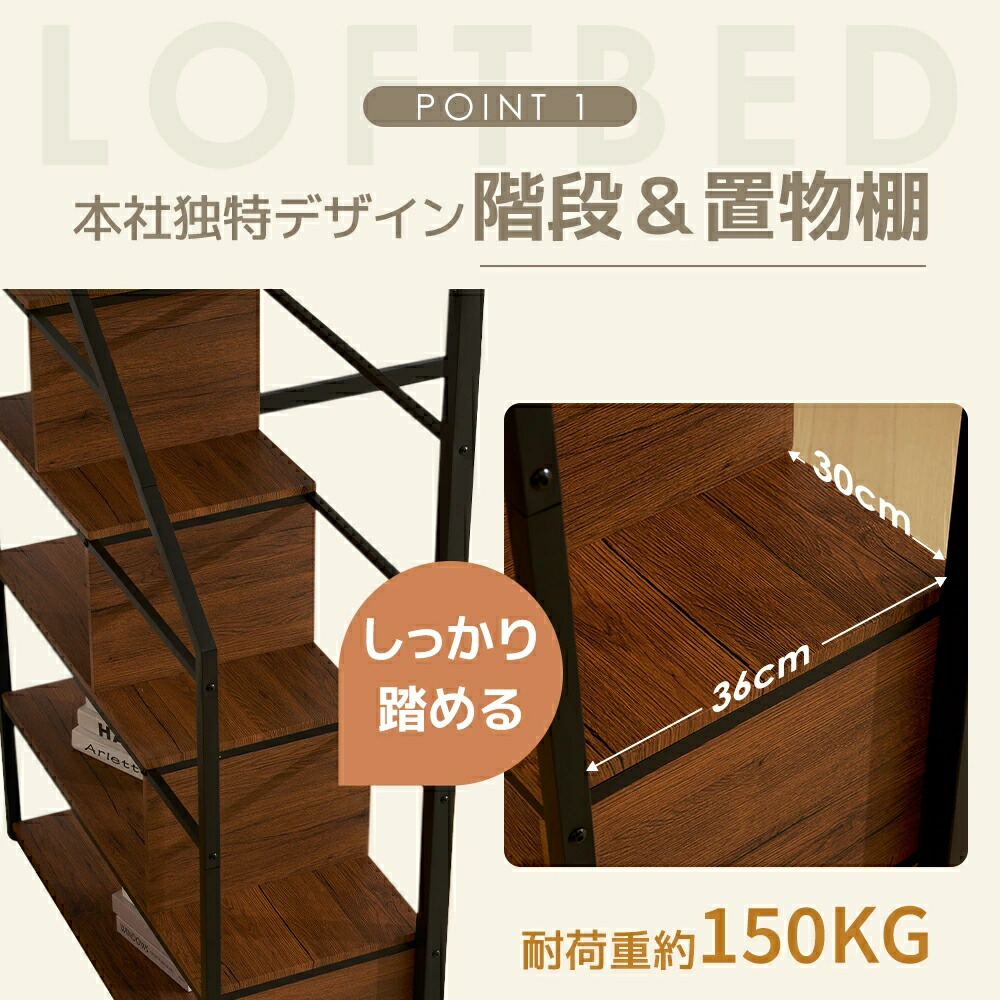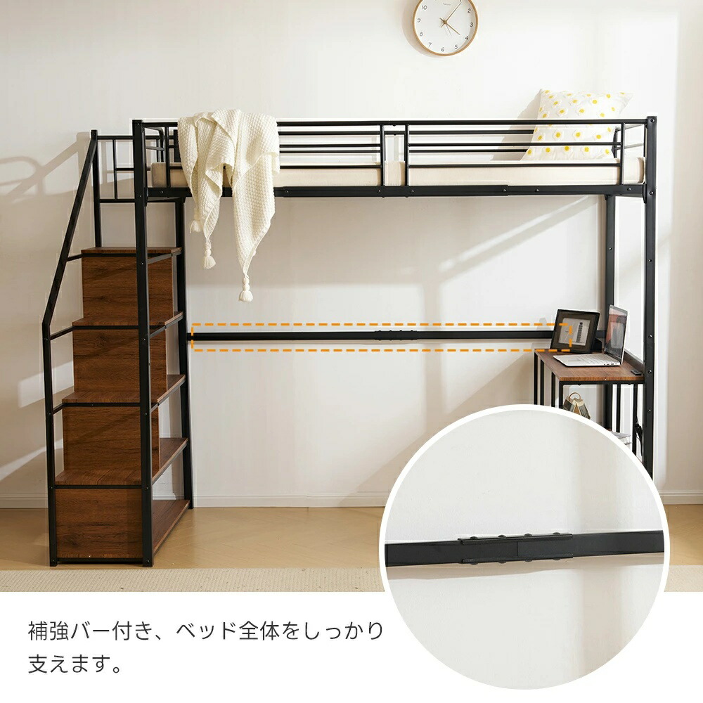 ロフトベッド 階段付き シングル デス ブラック ホワイト
