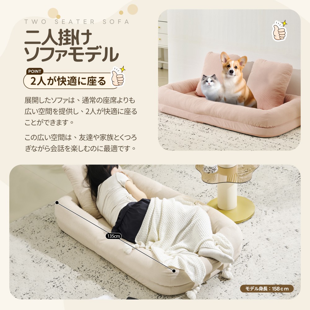 ソファーベッド ソファー 座椅子 1人 グレー ピンク アイボリー ブルー エクルベージュ