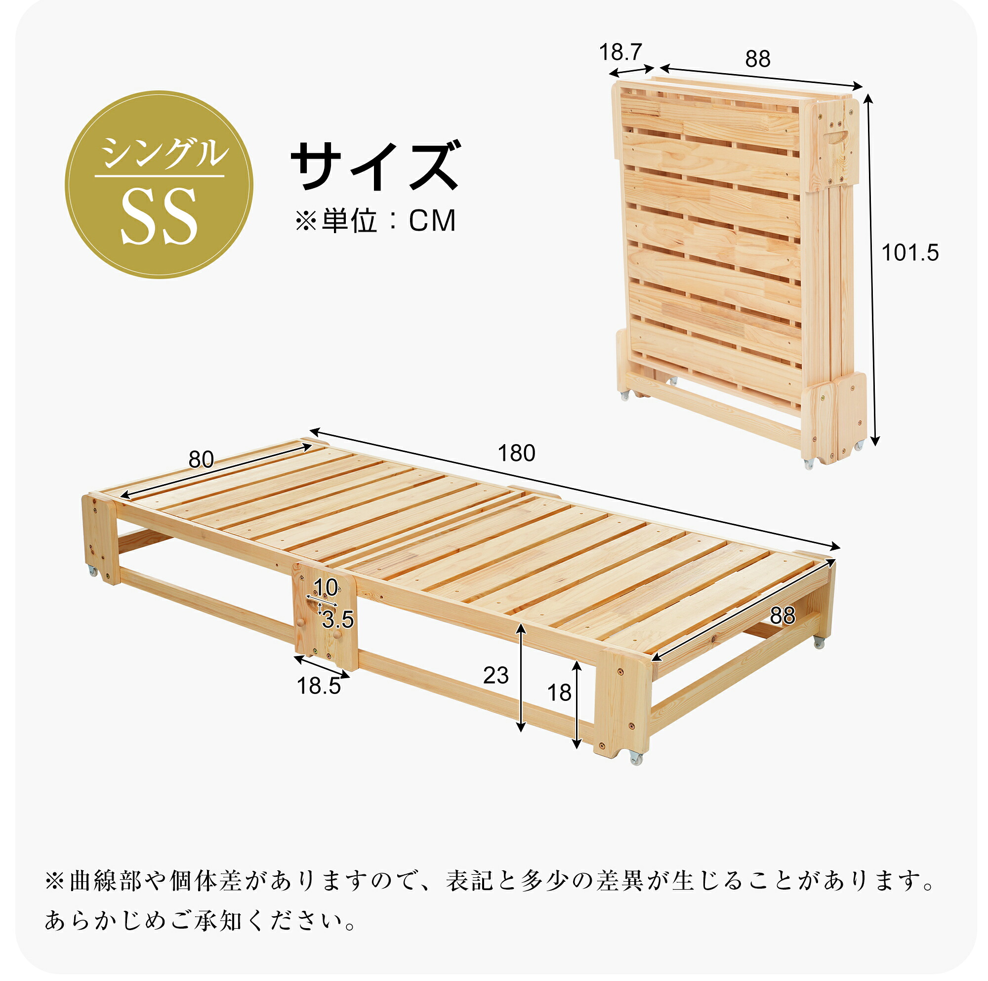 折りたたみベッド 天然木 2way 完 組立品 組立不要【完成品】 197*95cm 180*80cm