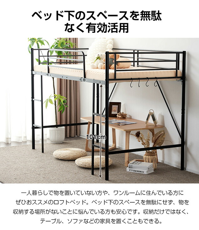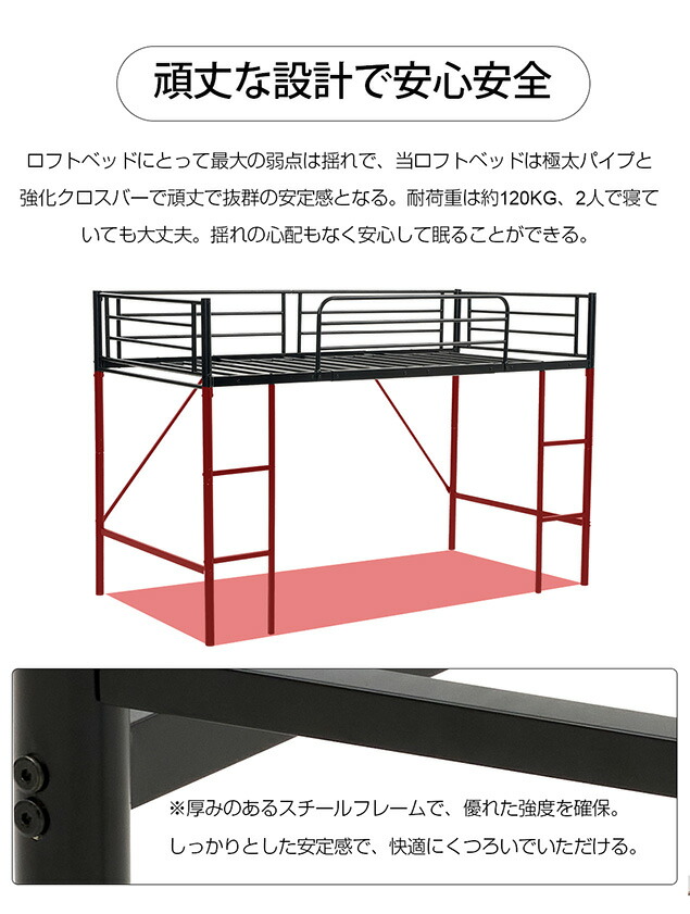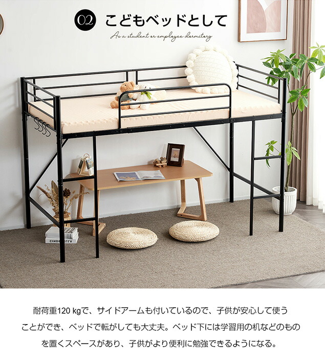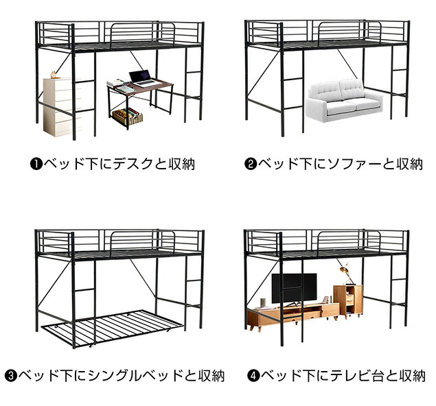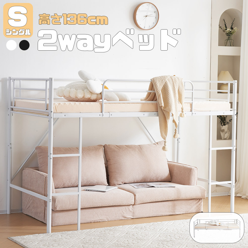 ロフトベッド 1台2役 耐荷重120k シングル セミダブル ホワイト ブラック