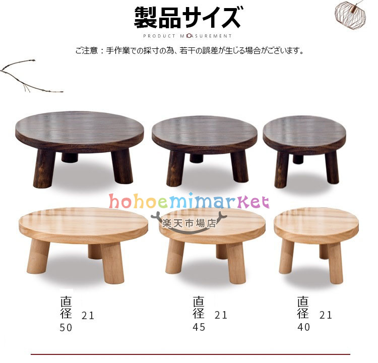 本格ちゃぶ台3本脚テーブル 天然木製無 ダークブラウン ナチュラル 40×40×21cm 45×45×21cm 50×50×21cm
