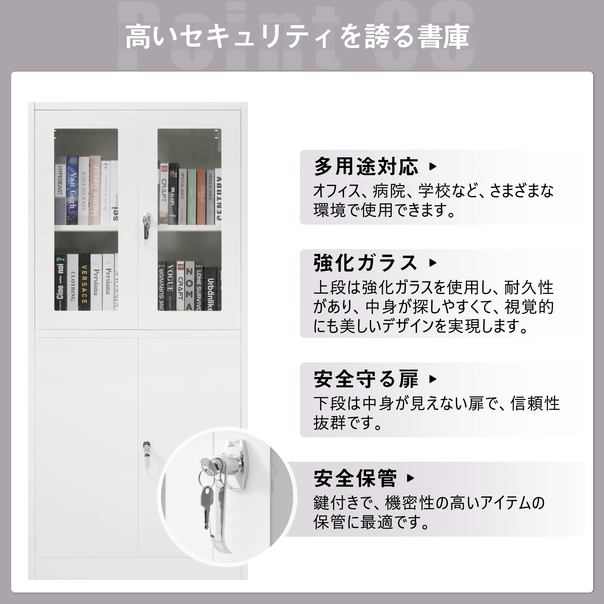 スチール書庫 両開き書庫 キャビネット本収納 幅80 高さ180cm 書類保管庫 大容量収納 鍵付き 書庫 多用途 保管庫 書類 収納 収納棚 物品棚 業務用 おしゃれ キャビネット オフィス