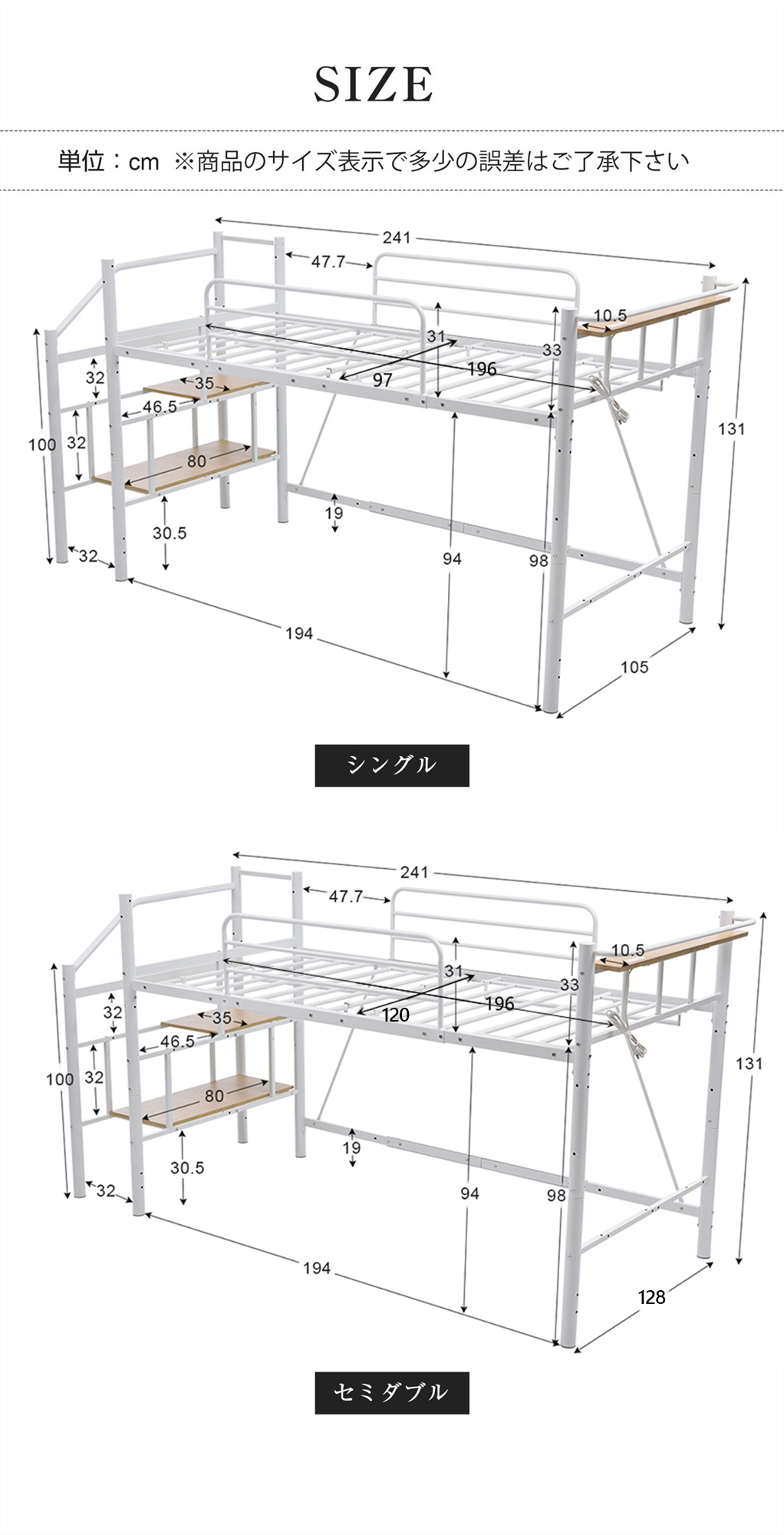 ロフトベッド パイプベッド シングル シングル セミダブル