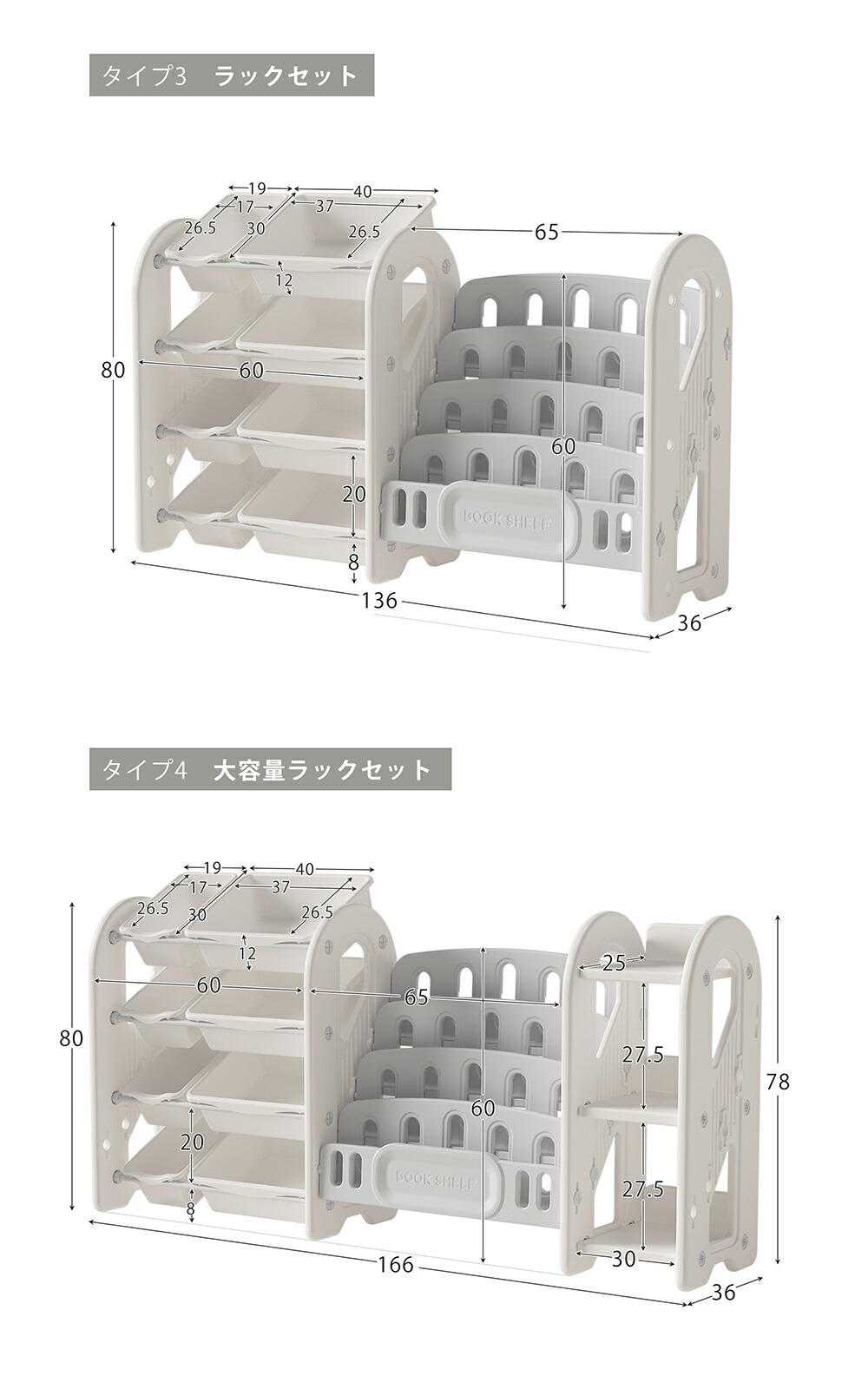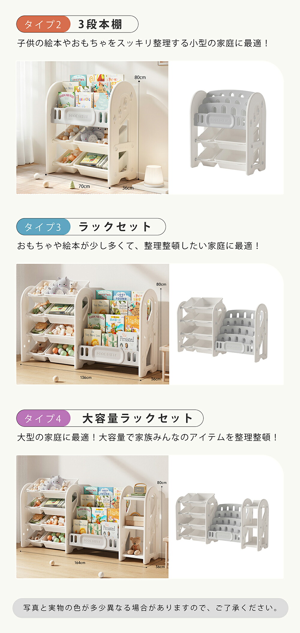 おもちゃ収納 ラック 3段 4段ラック タイプ1-おもちゃ棚 タイプ2-3段本棚 タイプ3-ラックセット タイプ4-大容量ラックセット