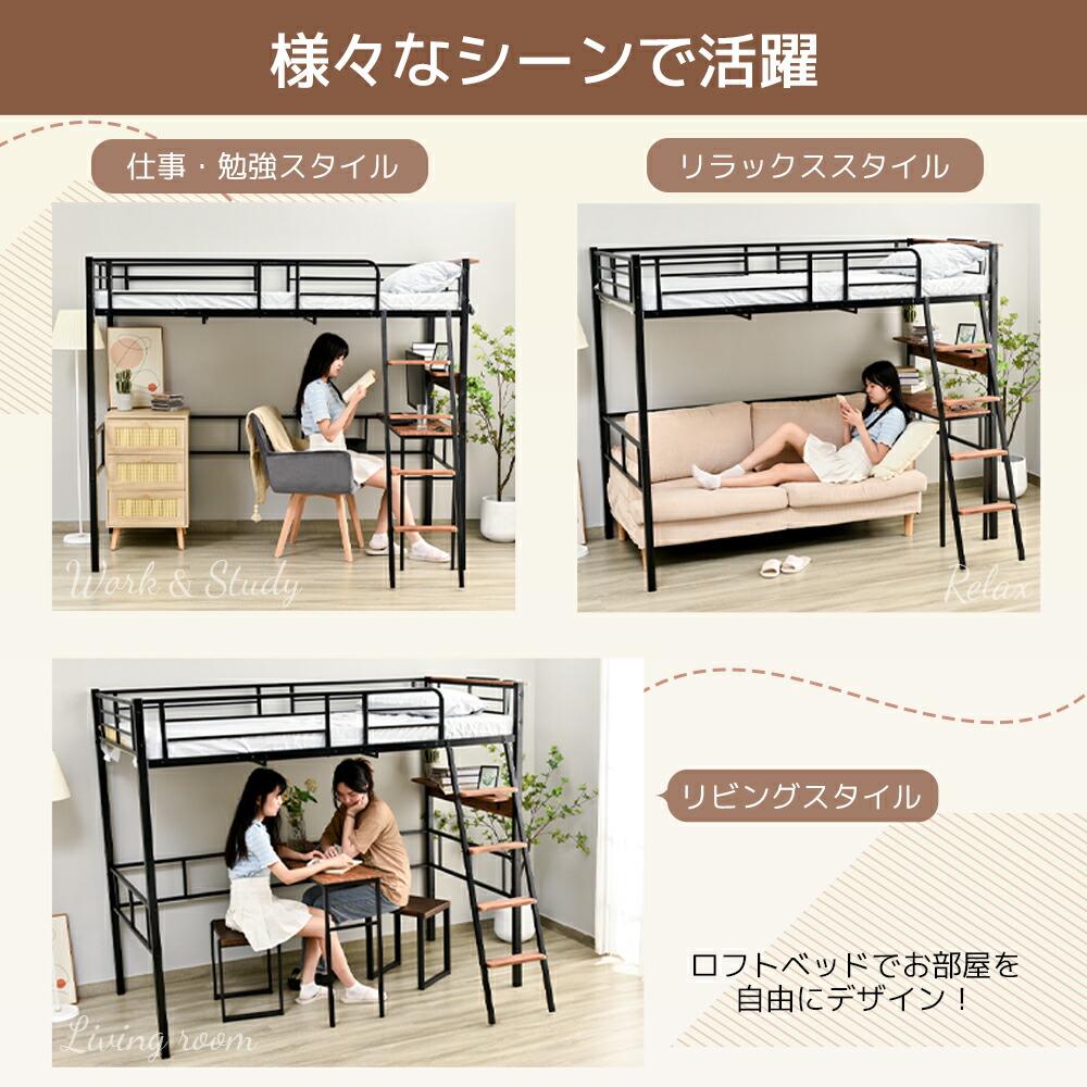 ロフトベッド 移動可デスク付き システ ブラック ホワイト